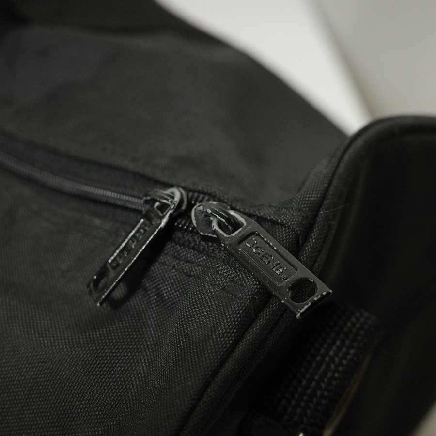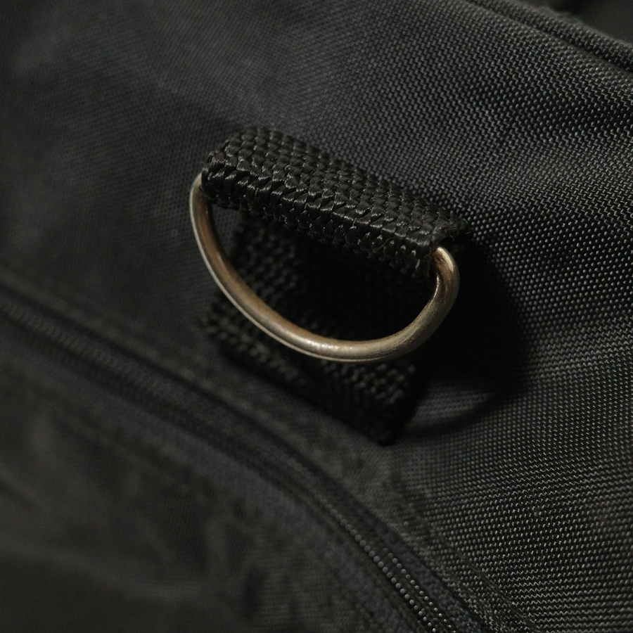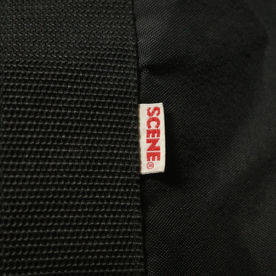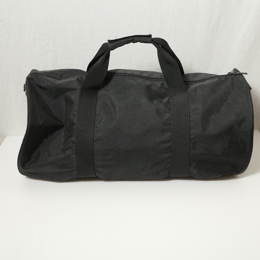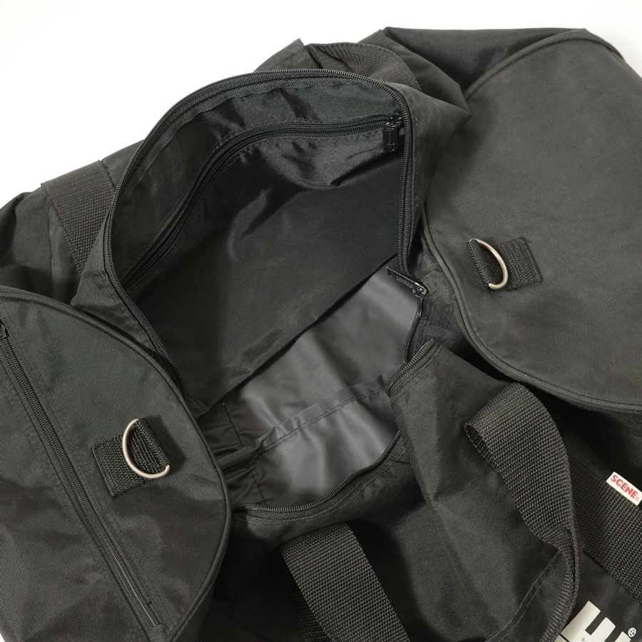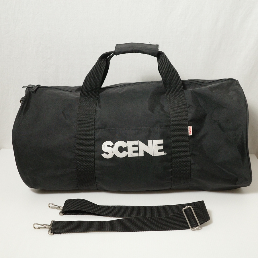 シーンのボストンバッグになります。黒地のナイロンにロゴがプリントされたシンプルなデザインです。