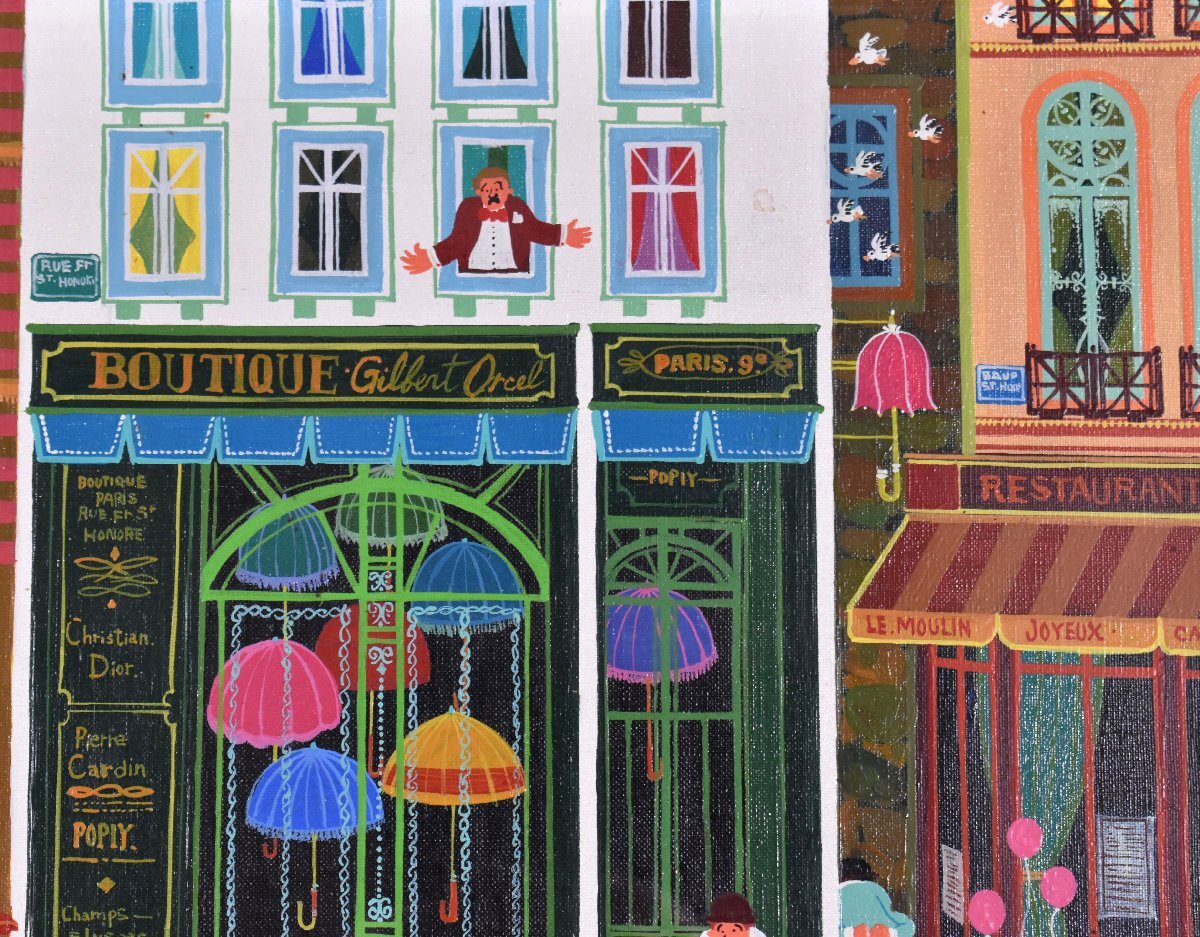 色彩の魔術師とも呼ばれ、シルクスクリーンで100色以上もの色を散りばめた鮮やかな多色作風により、一躍その名を馳せる。作品の多くは、シルクスクリーンによる鮮烈な色彩が非常に印象的です。その一方で、作品中の細部の人物の顔など間近で見ないと分からないところまで緻密に描写されています。 |