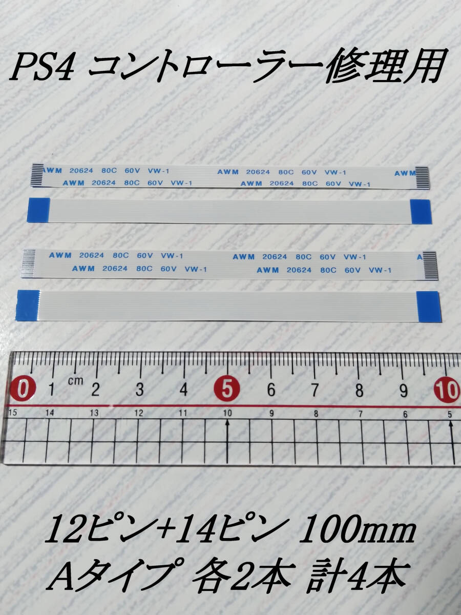 [匿名] 12ピン + 14ピン 100mm Aタイプ 各2本 計4本 フレキシブルフラットケーブル / FPC FFC Dualshock4 デュアルショック4 PS4 修理