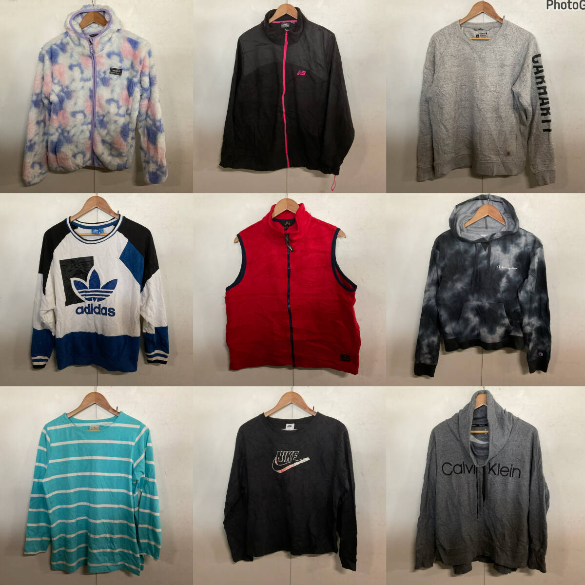 フリースジャケット、スウェットシャツ、パーカーなどアイテムMIX商品になります。