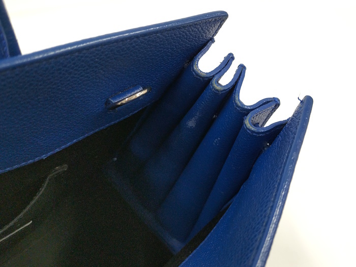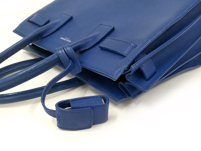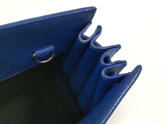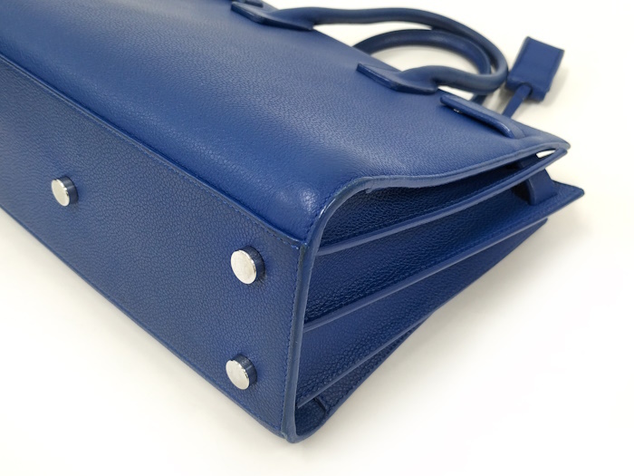 ◆商品情報 | ・カラー:ブルー ・素材/ライン:レザー ・サイズ:最大約 W26×H21×D11(cm) ※多少の誤差はご了承下さい。 ・内側:オープンポケット×1 |