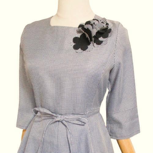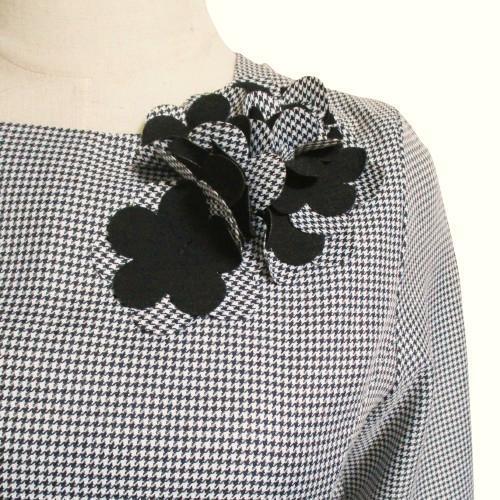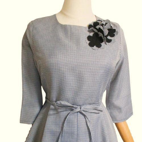 キャサリンコテージ CatherineCottageの コサージュが付いた上品で可愛い白黒の千鳥格子柄のワンピース