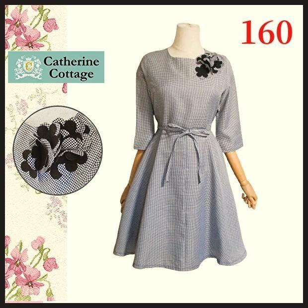 【キャサリンコテージ】ワンピース160卒服コサージュ付き発表会 手洗い 結婚式CatherineCottage 千鳥格子 七分袖 セレモニー 匿名発送
