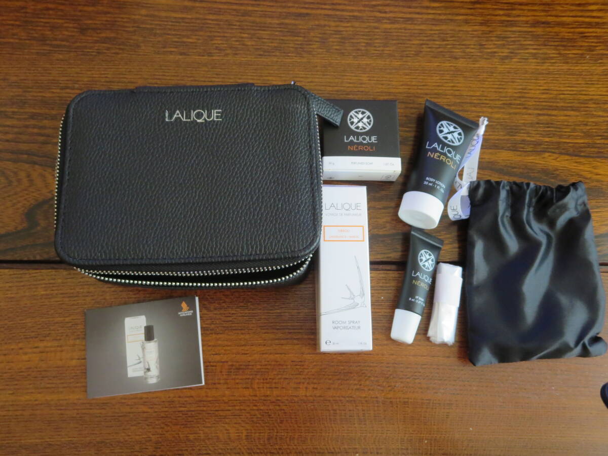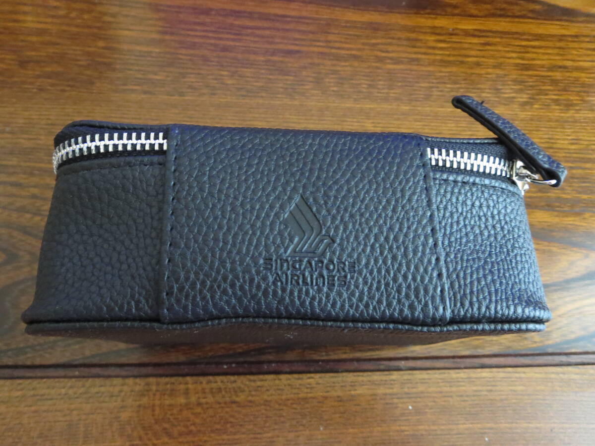 シンガポール航空のファーストクラスに搭乗した際にもらったラリックのアメニティポーチとリラックスウェアです。