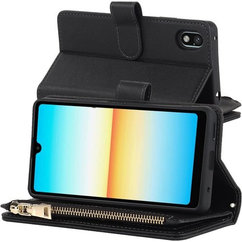 Pelanty for Xperia Ace III 縄掛けケース手帳型 SO-53C SOG08 携帯カバー 肩掛け斜めがけ ショルダー 合成皮革+TPU マグネット Sony Xperia Ace III 財布型カバー ICカード お札入れ小銭入れ大容量 収納ポケット スタンド機能 ソニー エクスペリアAceiii 3代 ストラップ付き 落下防止 耐衝撃 全面保護 肩縄付き-ブラック 466
