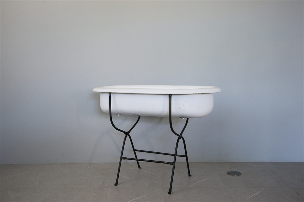 英国アンティーク◇琺瑯(ホーロー)製ベビーバス/風呂/花器/プランター/飾り棚/オブジェ/店舗什器/ディスプレイ台/イギリスビンテージ雑貨