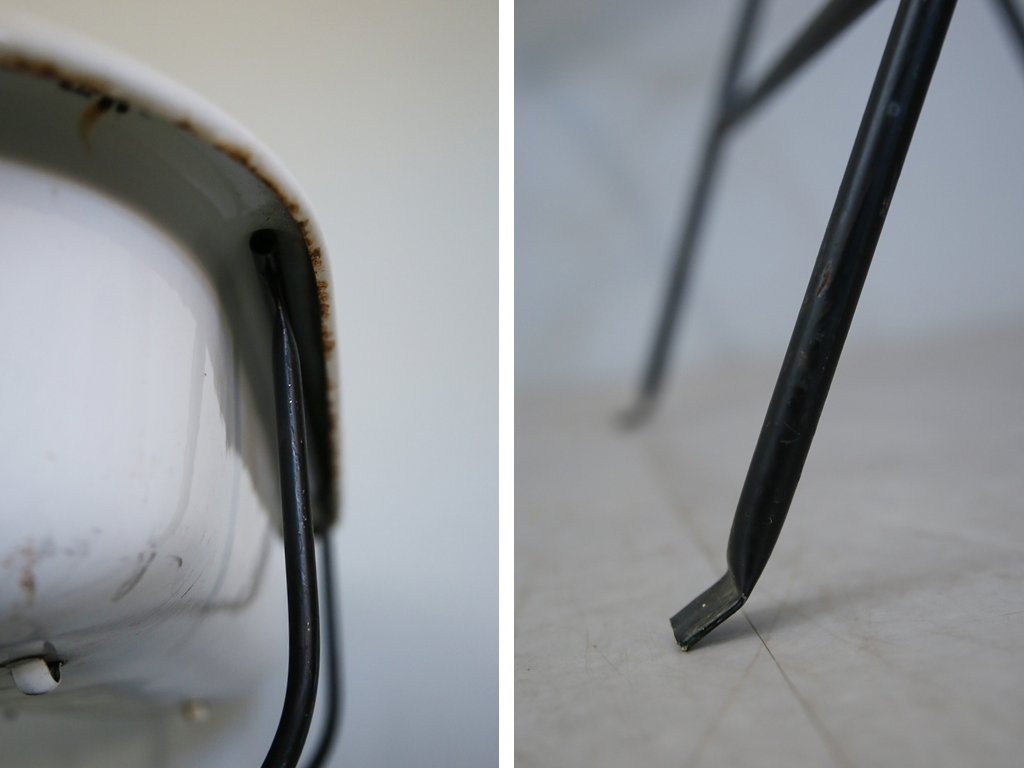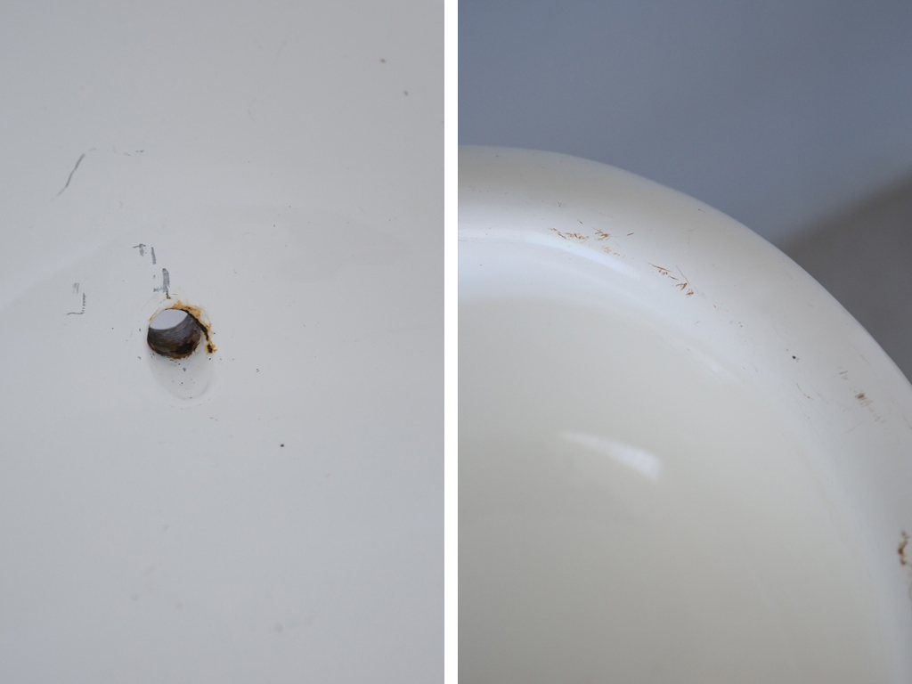 経年により琺瑯(ホーロー)に傷や欠け、スタンドの塗装はげや歪みなどありますが、