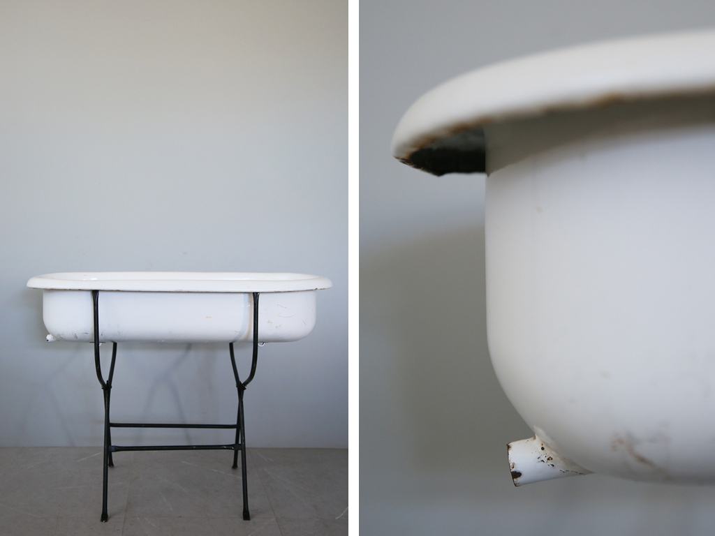 イギリスの田舎で見つけた古い琺瑯(ホーロー)製のベビーバスです。