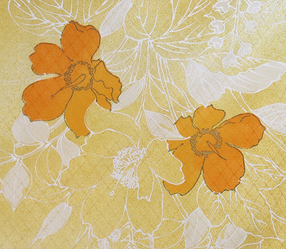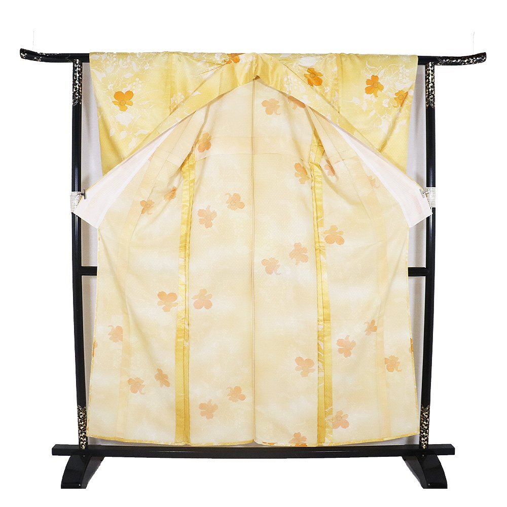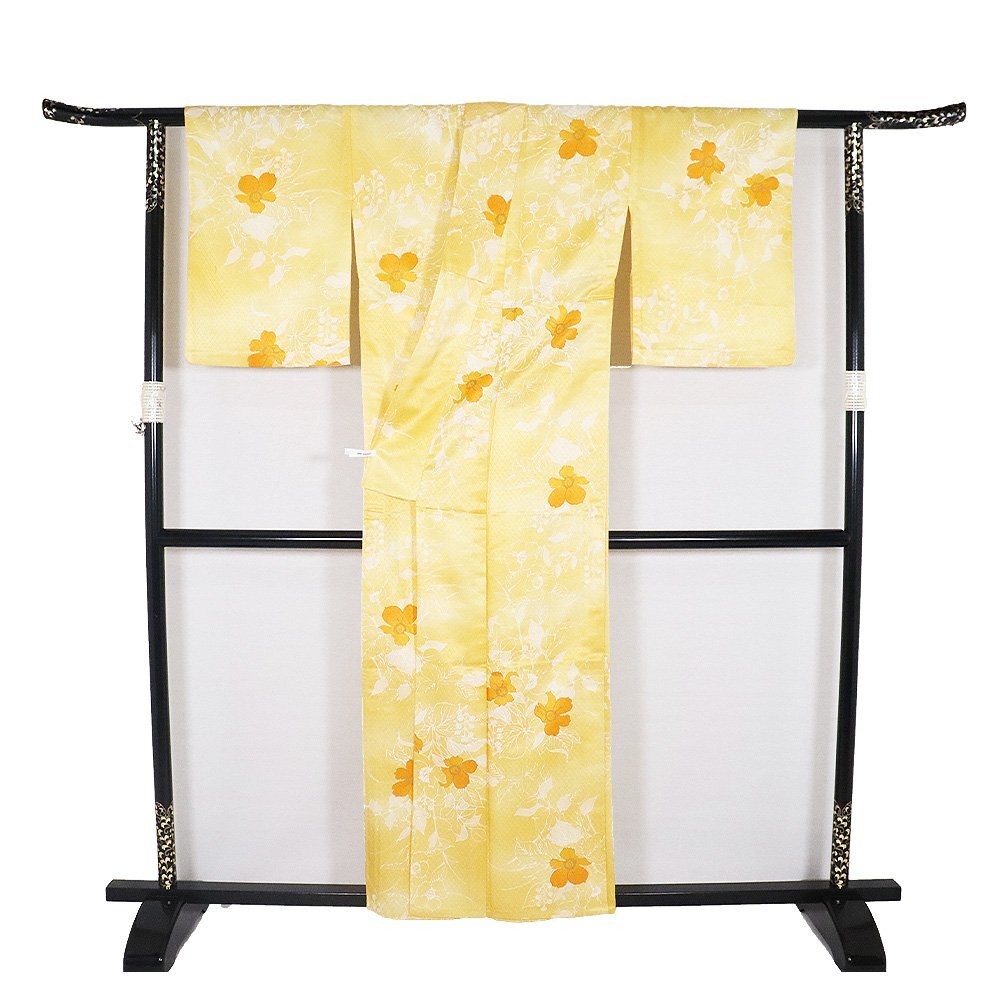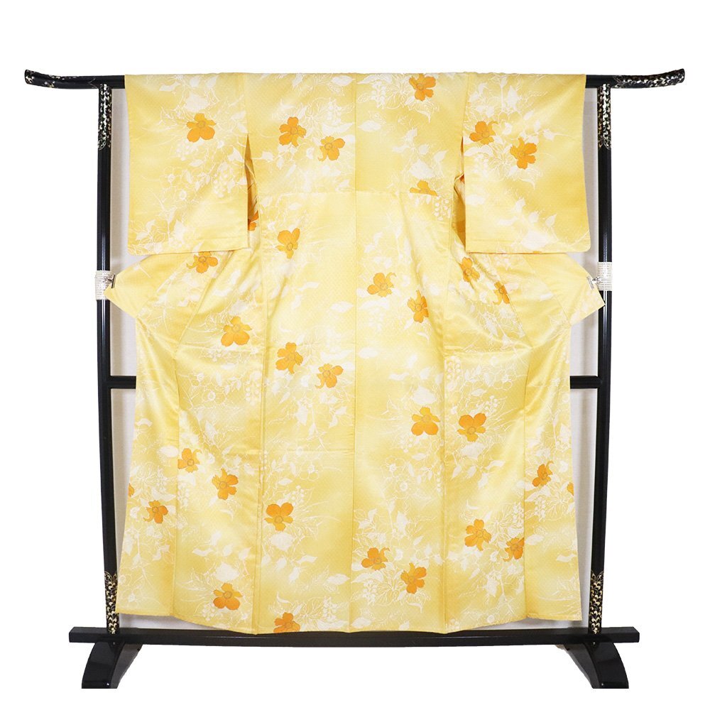 | 単衣 小紋 洗える着物 オレンジ地 花柄 158 広襟 7号 |