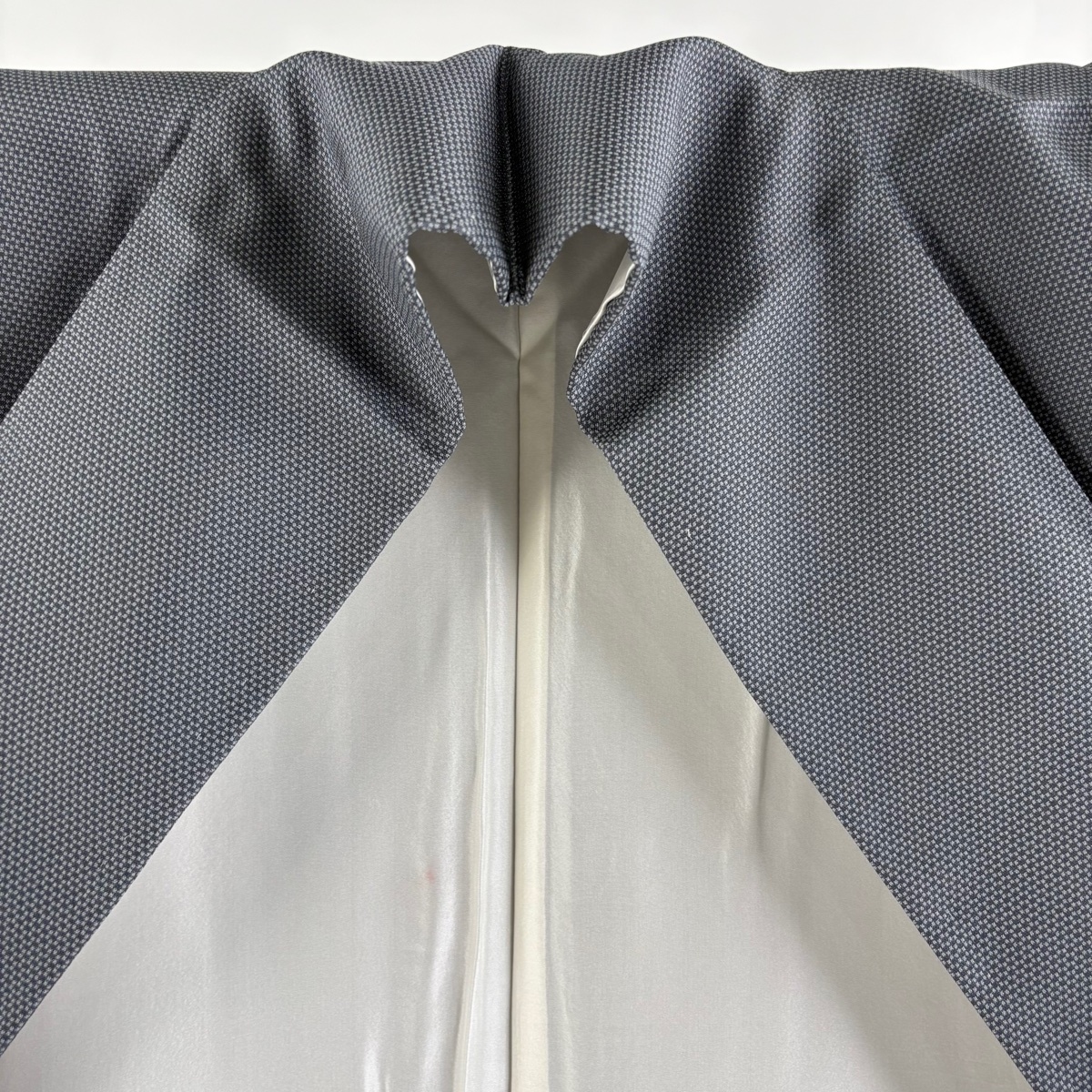 | お召 逸品 証紙 本場筑前博多織 博多風通 幾何学模様 灰色 袷 身丈163 裄丈65 M 正絹 【中古】 |