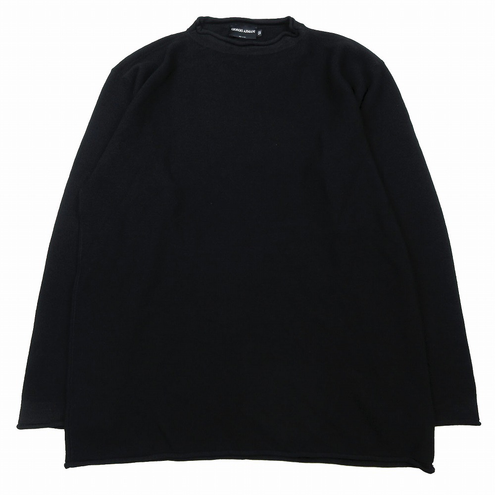 【ジョルジオ アルマーニ GIORGIO ARMANI カシミヤ シルク ウール ニット 薄手 セーター 長袖 モックネック 52 ブラック ur266】 | |