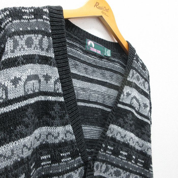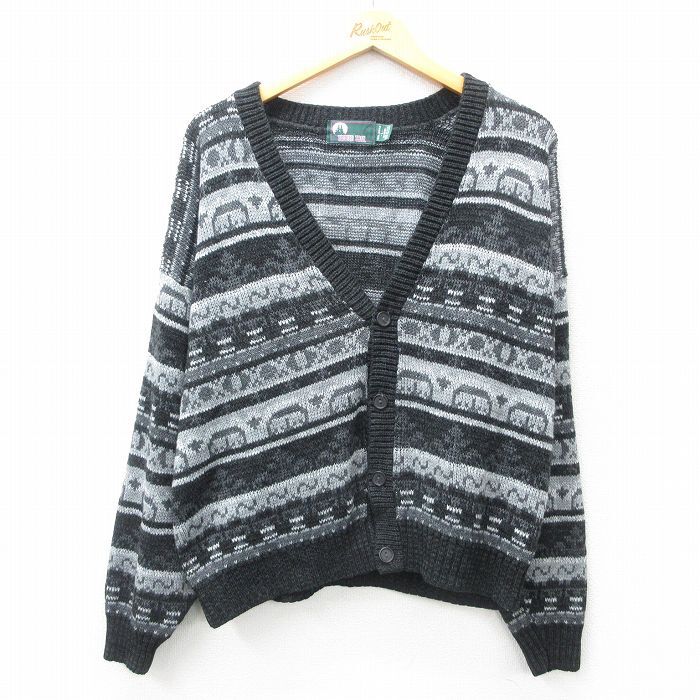 【商品名】 XL★古着 長袖 ニット カーディガン メンズ 90年代 90s アクリル USA製 黒他