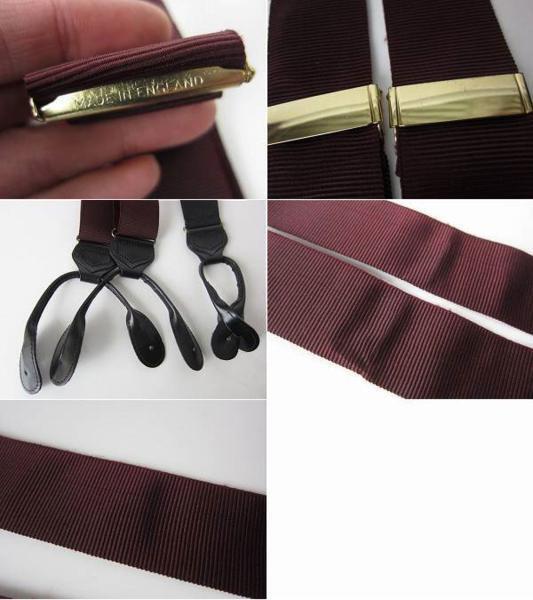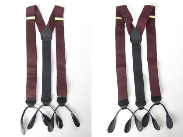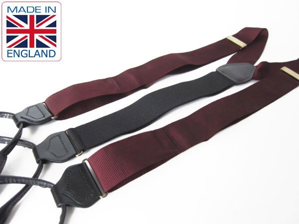 商品名 | 美品/英国製/無地×レザー/ボタンタブ式Y型サスペンダー/ワイン系/メンズ/長いサイズ/ブレイシーズ/ビジネス/投資家/スーツ/D100 |