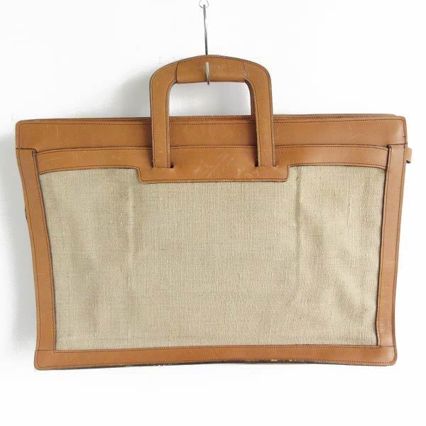 商品名 | レザー×リネン系キャンバス/ブリーフケース/茶系×ナチュラル系/ビンテージ/ビジネス/バッグ/書類かばん/D118 |