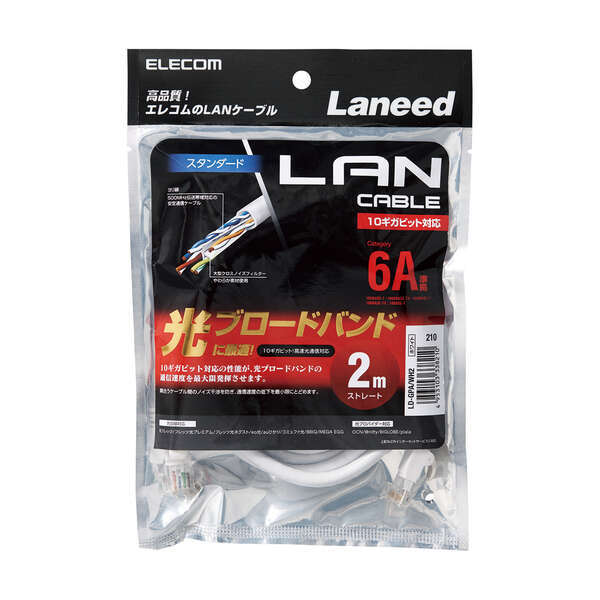 | ●高速光通信に最適な、10ギガビット・イーサネットの「10GBASE-T」に対応した、 Cat6A準拠LANケーブル | |