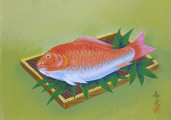 | 作品名 | 手書き油絵 おめで鯛・縁起物(画号 春光) |