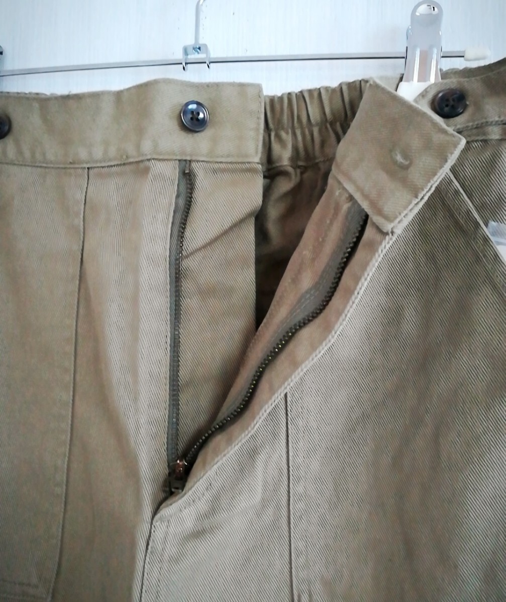 ストレートフォルムで、すっきり見えます。ウェストは後ろがゴム仕様で、穿き心地も抜群◎
