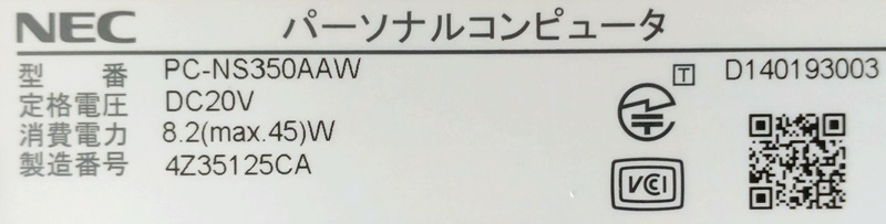 【メーカー/品名】NEC LaVie NS350/A PC-NS350AAW