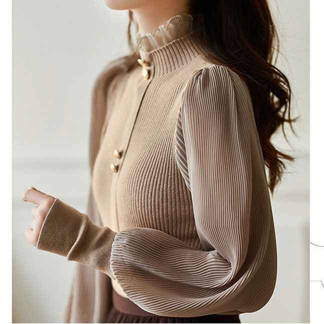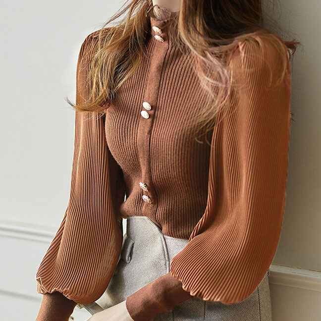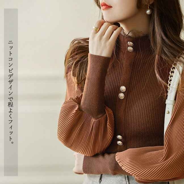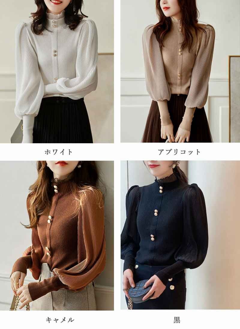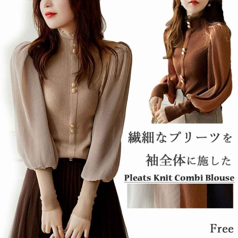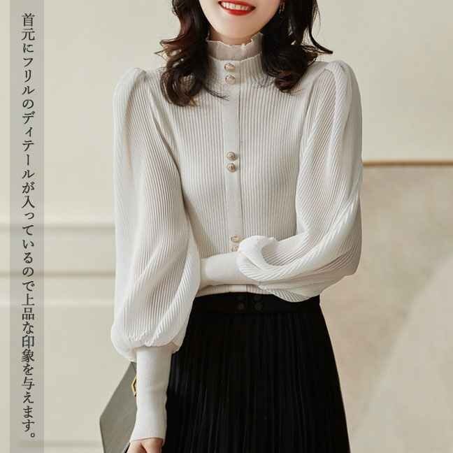・細かい繊細なプリーツを袖全体に施したパフスリーブブラウス。