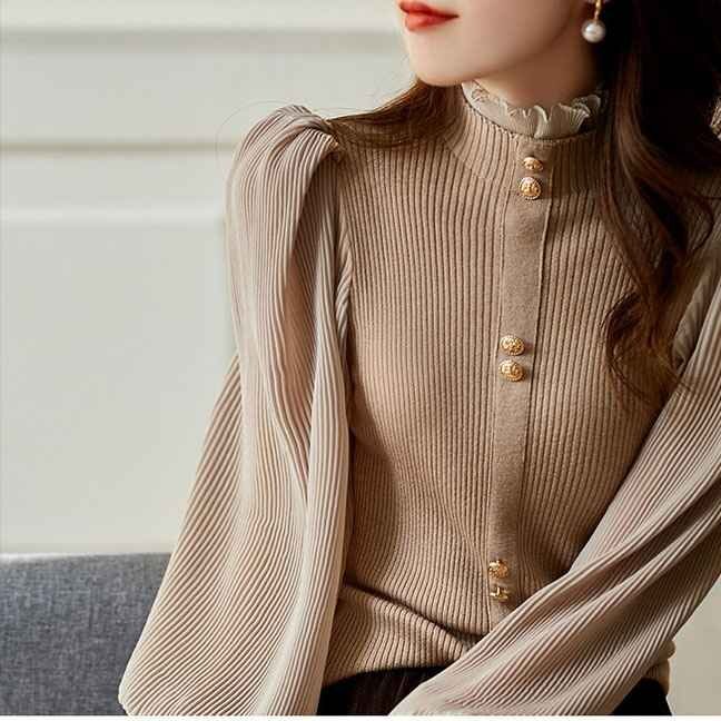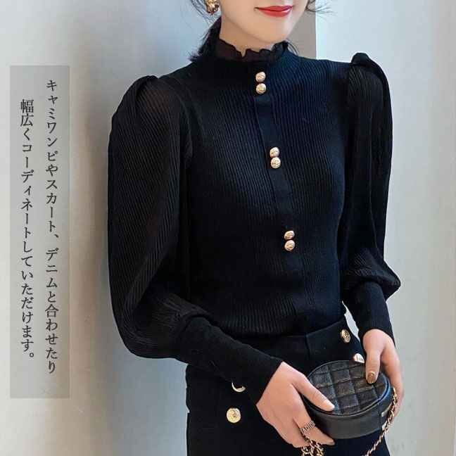 ・首元にフリルのディテールが入っているので上品な印象を与えます。