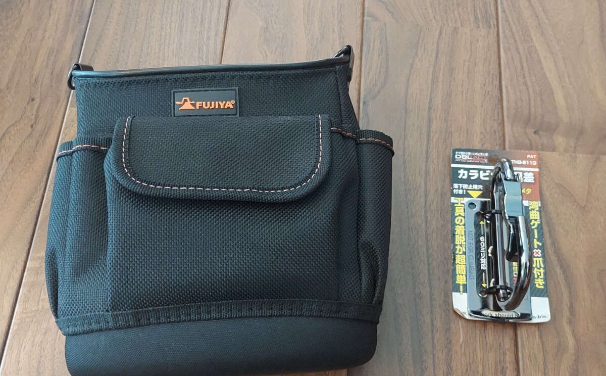 フジ矢の腰道具とダブルタクトのカラビナのセットになります。
