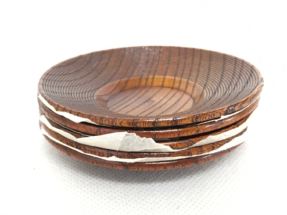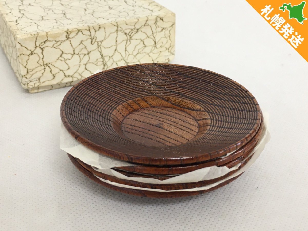 【R7-70082】未使用 欅 ケヤキ 茶托 5客 セット 茶器 茶道具 茶器 抹茶道具 茶懐石 茶事 箱付き【千円市場】