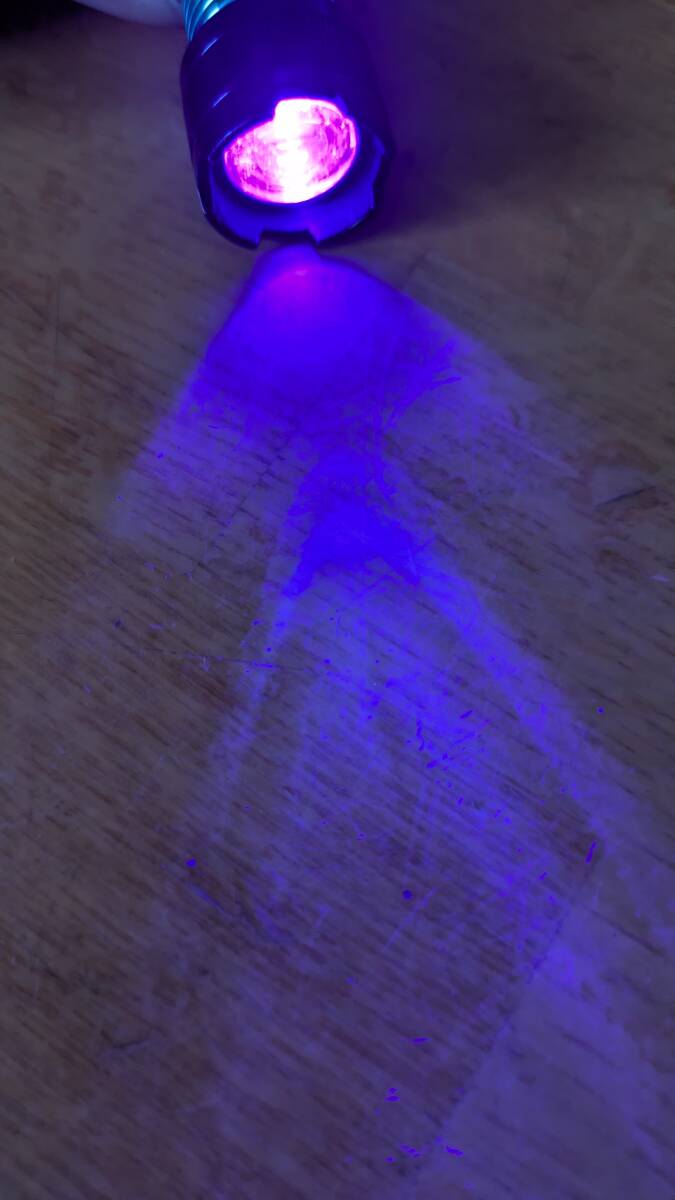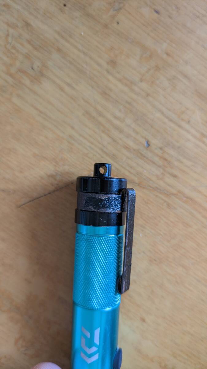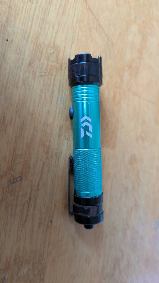 ・グロー(夜光)系ルアーに照射してアピール力を維持。