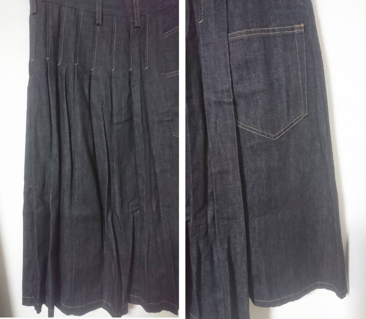 ご覧頂きありがとうございます。ワイズの半プリーツデニムスカート(委託品)になります。部分的にプリーツが入ったデニム素材のスカートです。色は黒、素材は綿100%(デニム)、サイズは1、ウエスト39cm、ヒップ50cm、丈(右サイド)73cm・(左サイド)77cm位です。素人採寸・変形デザインとの事をご了承下さい。たたみ皺はございますが綺麗な方かと思います。ユーズドとの事をご理解頂ける方のみご入札願います。ノークレーム、ノーリターンでお願い致します。発送はヤマト運輸になります。ご連絡は2日以内、お支払いは3日以内でお願い致します。なお出品商品と無関係なご質問、画像転用、値引き交渉はご遠慮下さい。