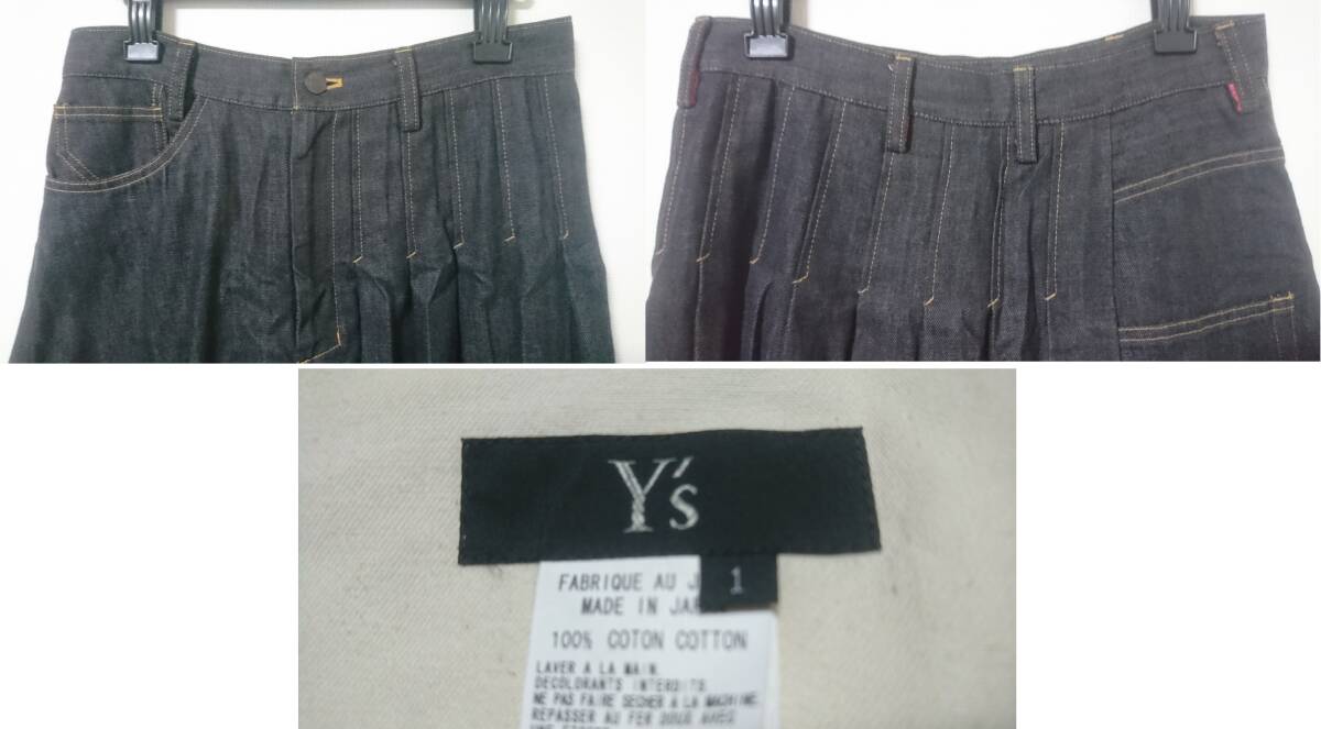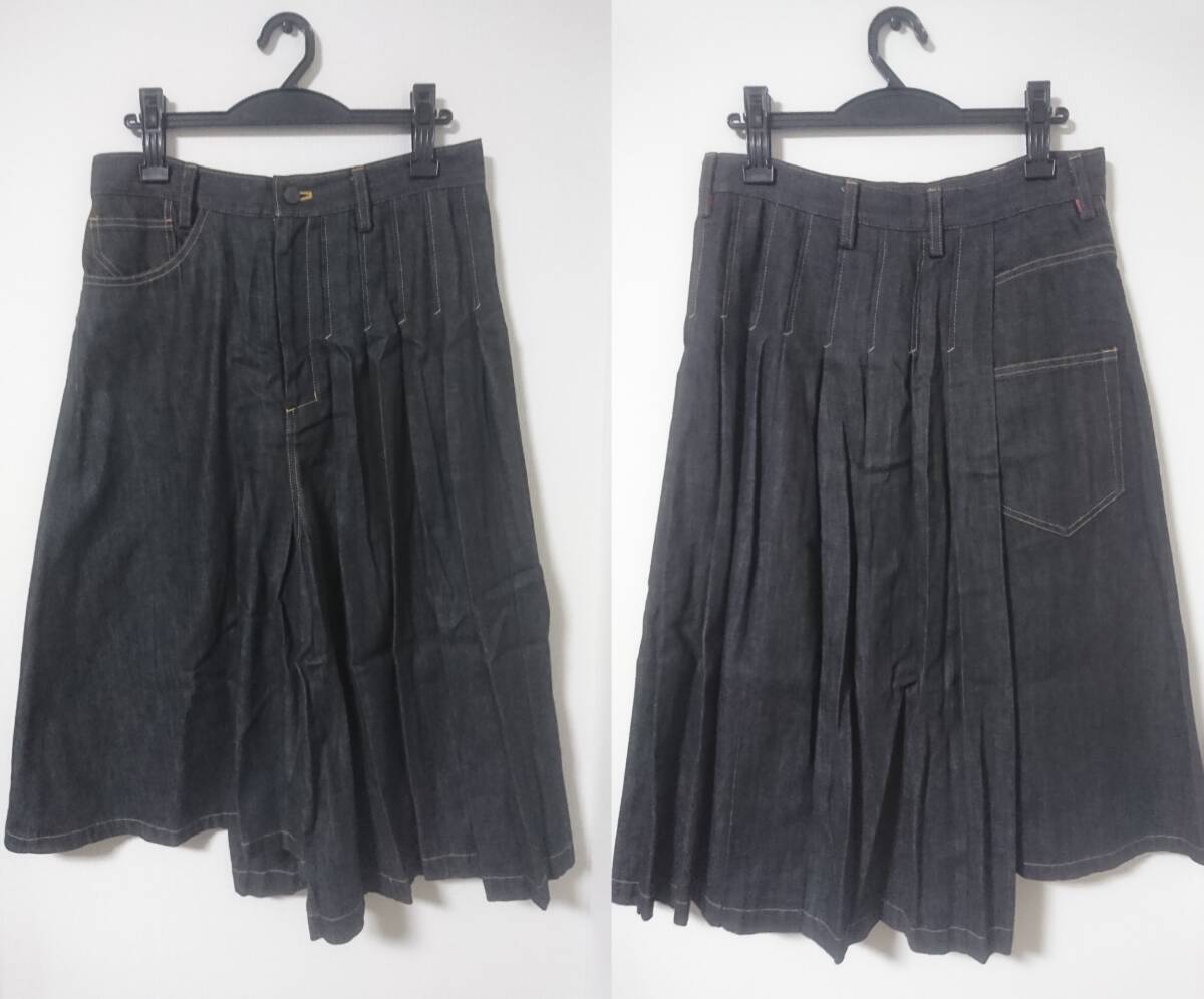 Y's ワイズ★半プリーツデニムスカート★黒
