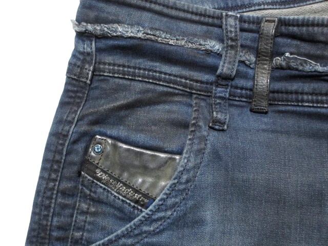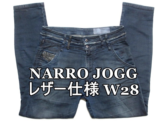 即決 レザーと光るストーンリベット ジョグジーンズ DIESEL NARROT SPZ-NE ディーゼル ナロット W28実80 ストレッチデニム 細身美脚 メンズ