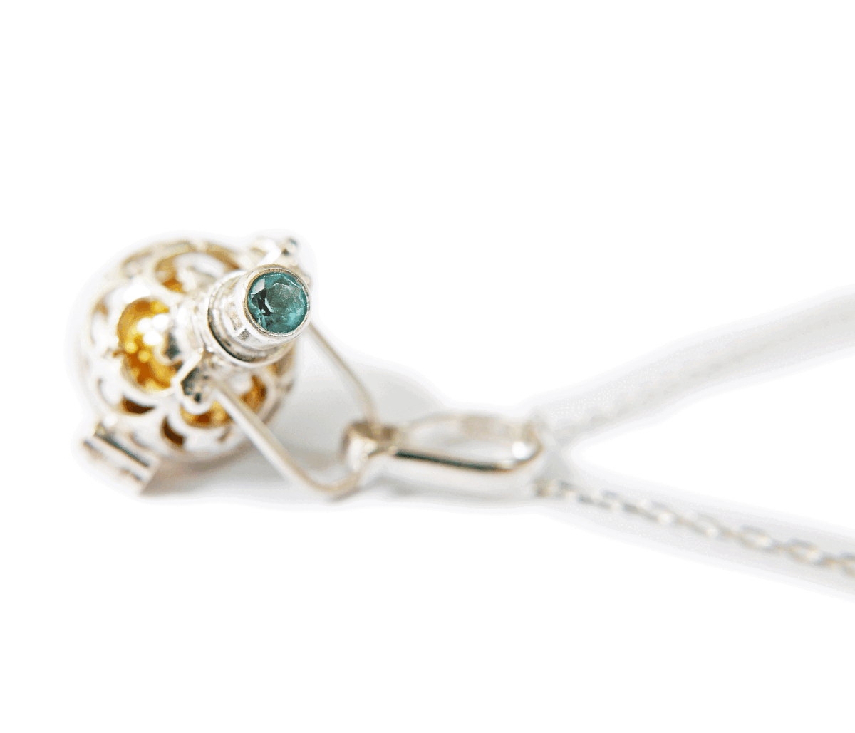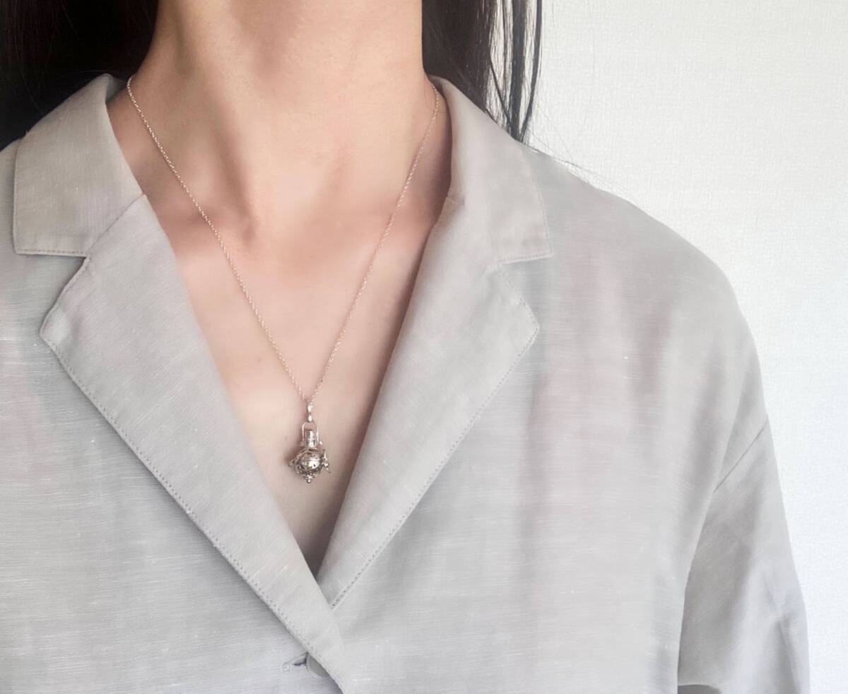 ☆セール☆アクアマリンのガムランボール☆揺らすとシャラン♪癒しの音色が響くヒーリングペンダント☆ シルバー製/3月誕生石/プレゼント