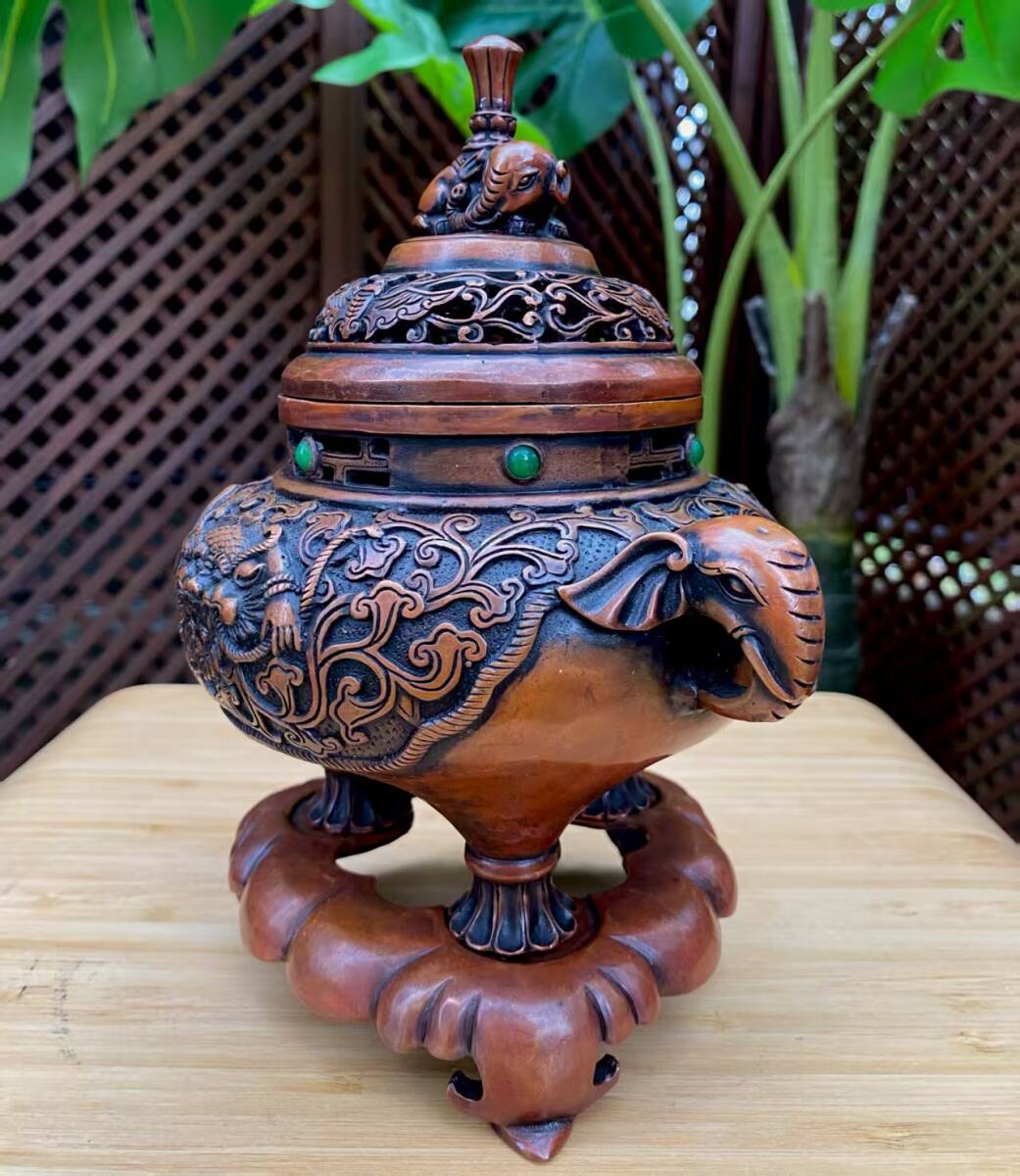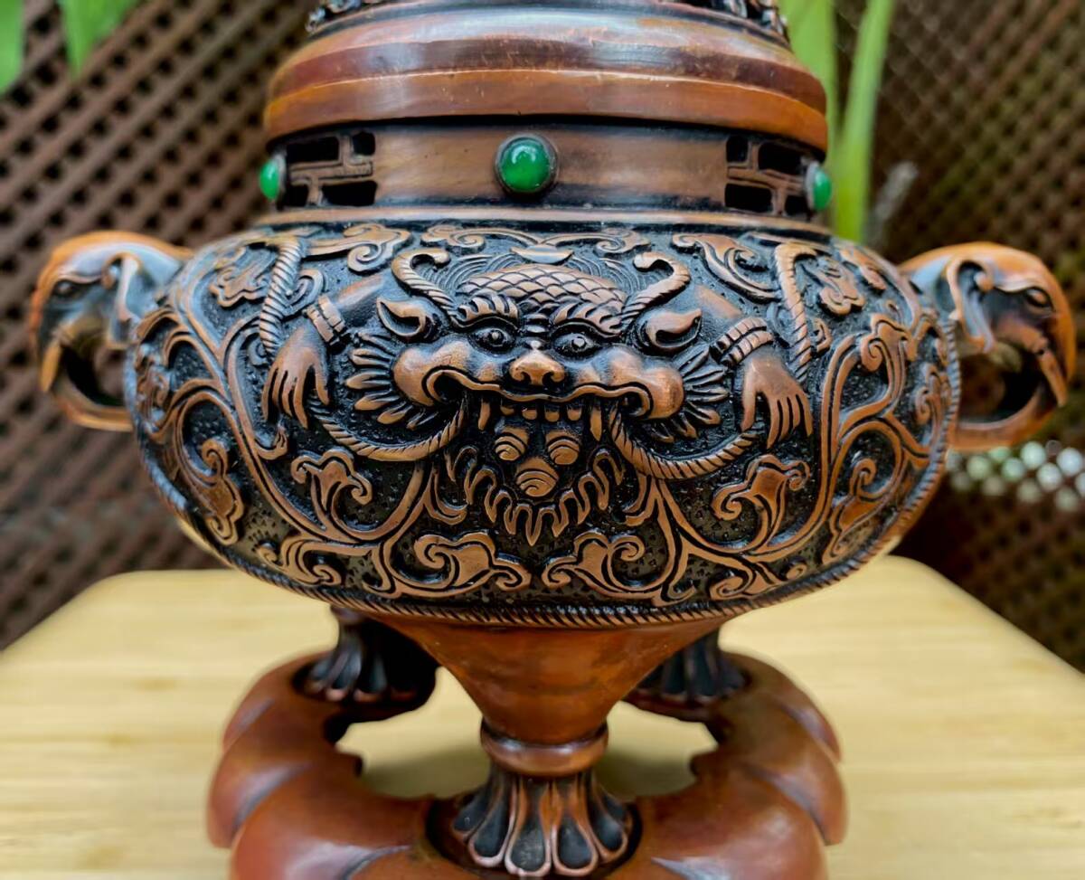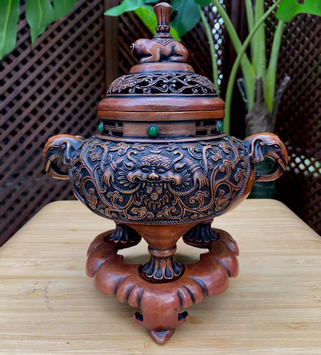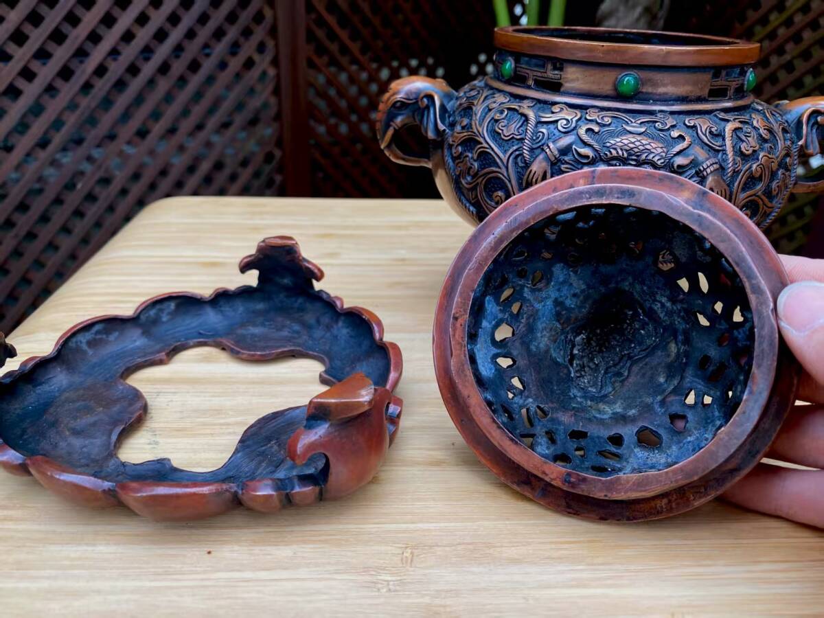 香炉 時代旧蔵 清時代 乾隆年制 古銅に宝石をちりばめた町家魔除けの燻製炉 銅製 仏教古美術 廃寺旧蔵 廃寺買出品 古置物 古玩 MS6-030625