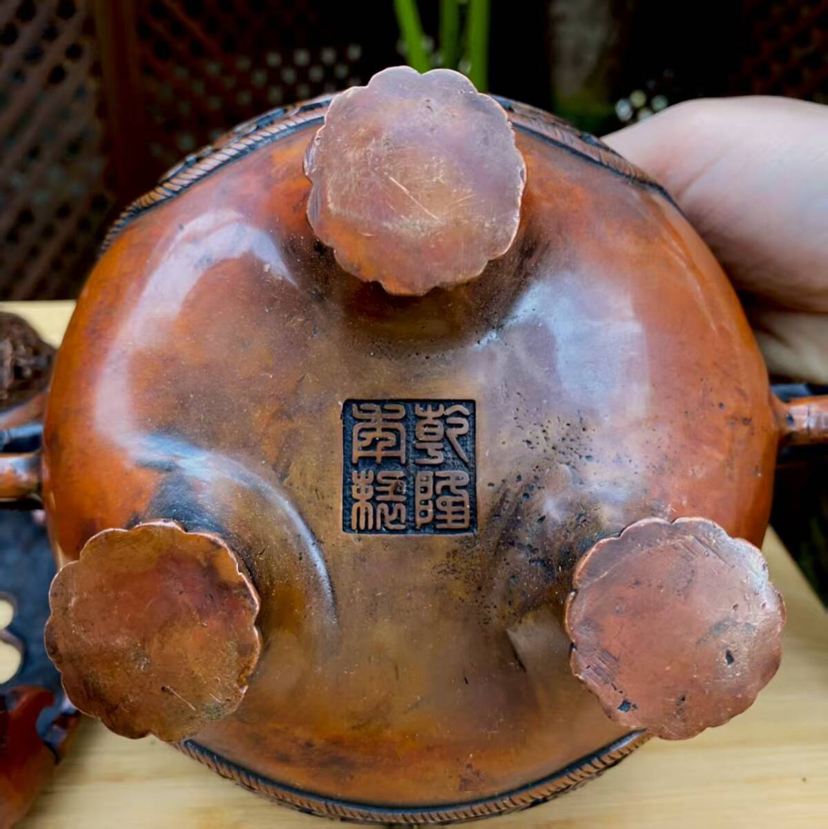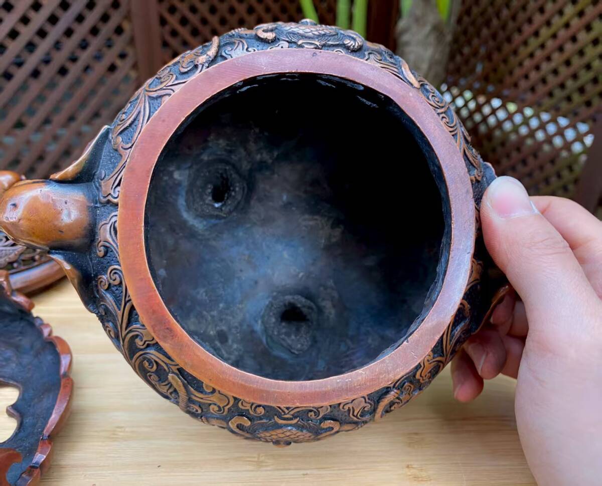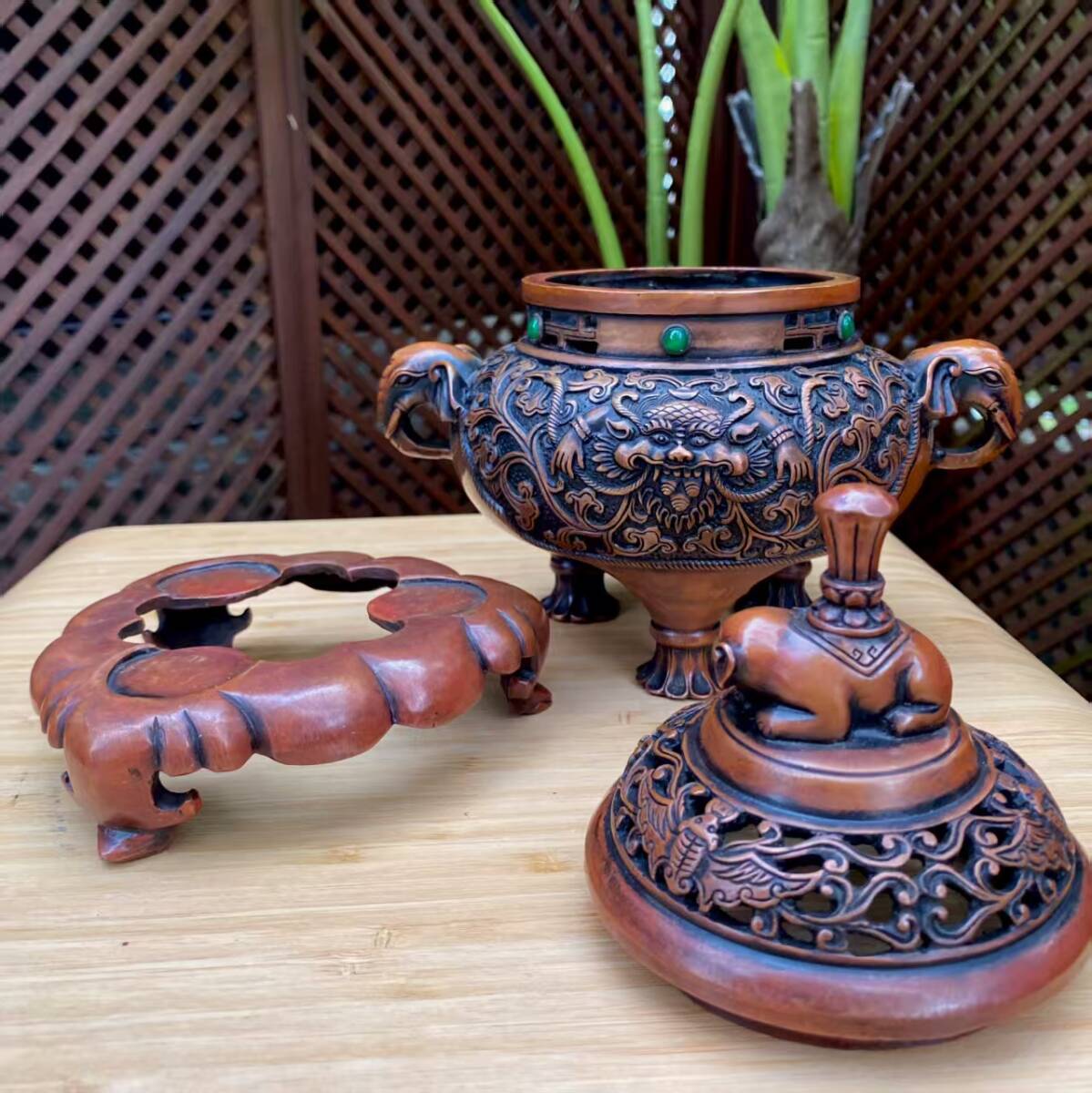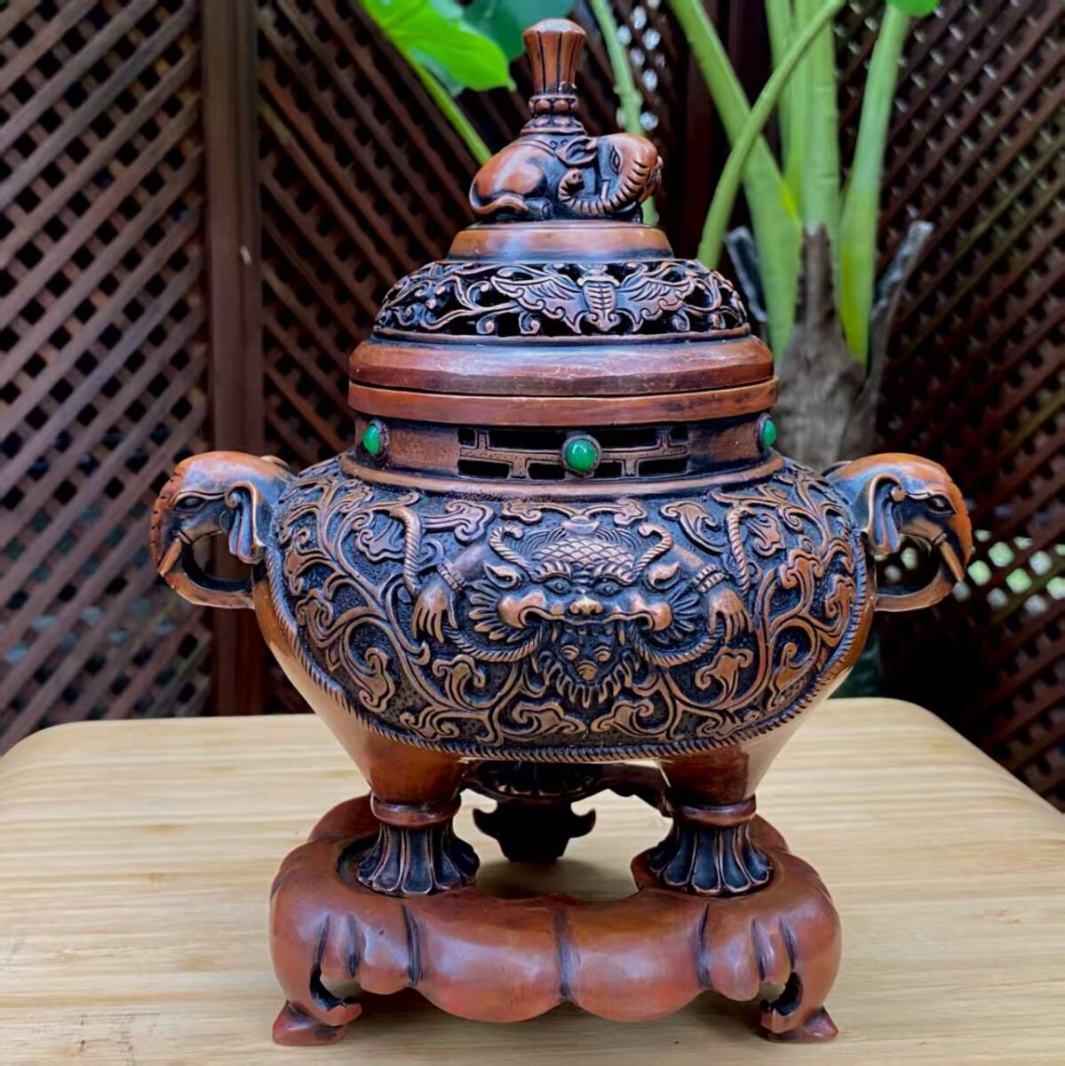 香炉 時代旧蔵 清時代 乾隆年制 古銅に宝石をちりばめた町家魔除けの燻製炉 銅製 仏教古美術 廃寺旧蔵 廃寺買出品 古置物 古玩 MS6-030625