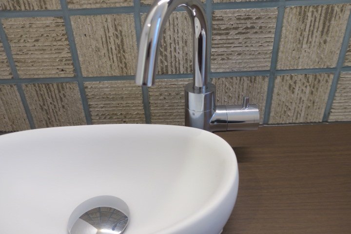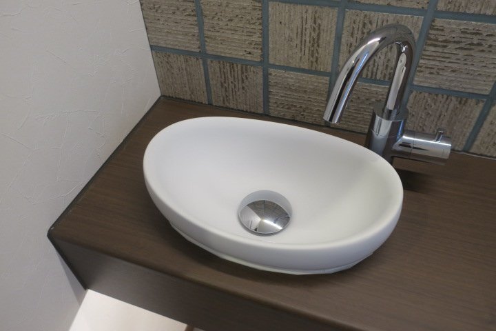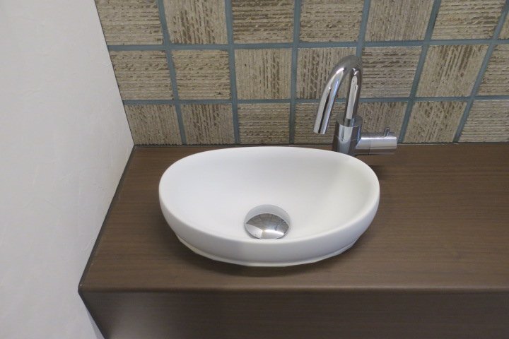 洗面化粧台の中央のタイルや鏡は基本的に付属致しません。