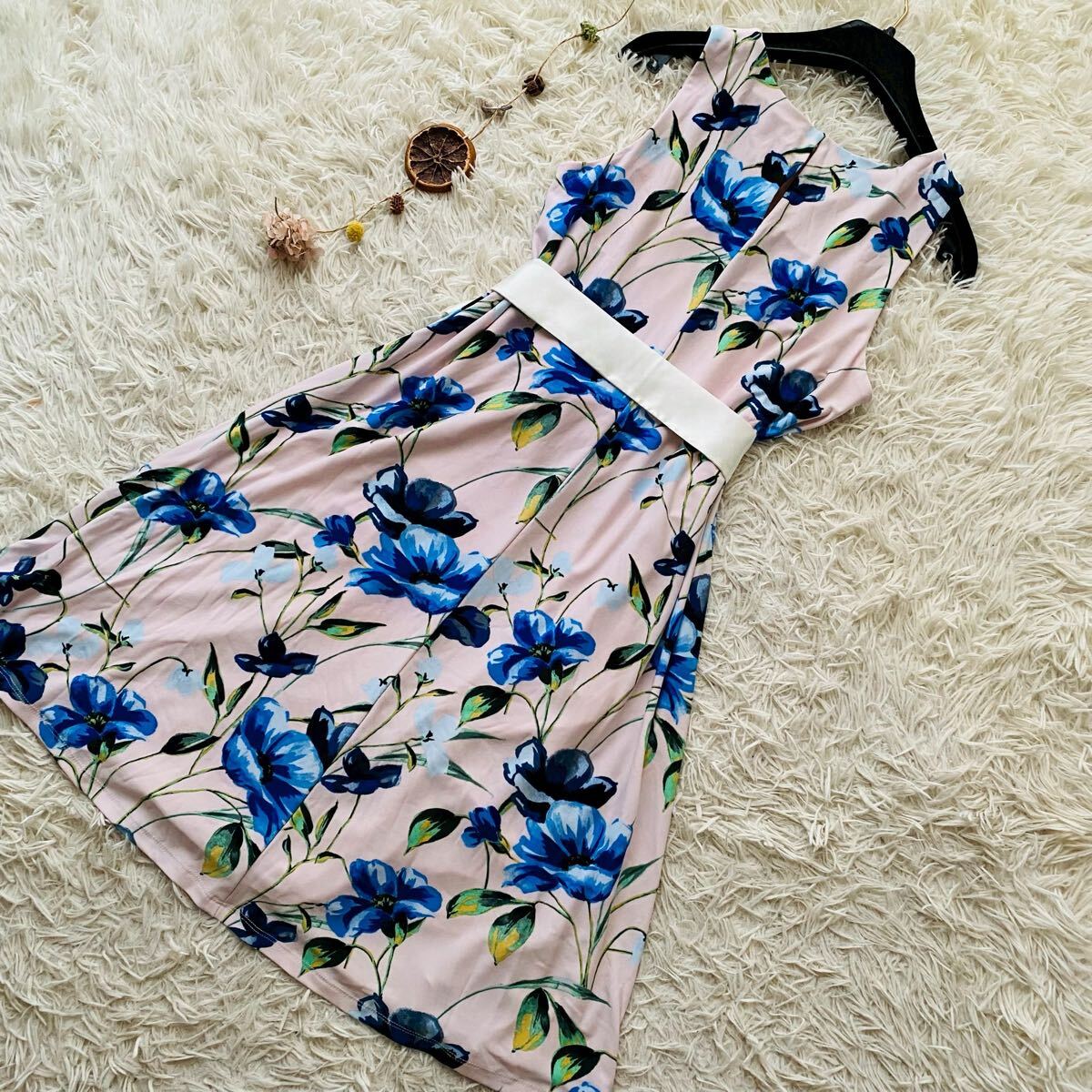 *適度に絞られたウエストから裾に向かってフレアに広がるAラインシルエットが女性らしさを演出。春夏の季節に着映えするひざ丈ノースリーブワンピースです◎手洗い可なのも嬉しいポイント◎