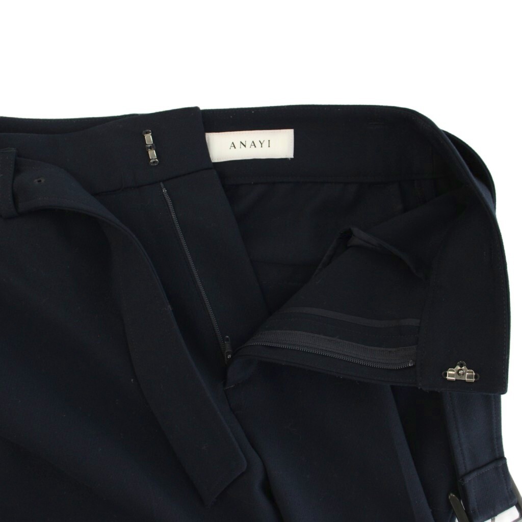アナイ ANAYI ワイドパンツ ガウチョパンツ クロップド ベルト 36 紺 ネイビー 101817-12-070-65-360 /HN レディース