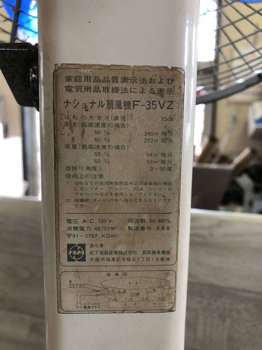 動作品 B-1757 NATIONAL ナショナル 昭和レトロ 扇風機 F-35VZ リビング扇 35cm