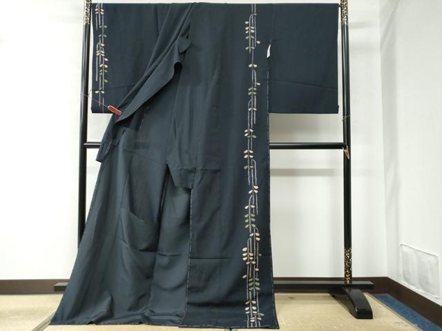 平和屋着物●訪問着 絞り 草木文 紺地 仮絵羽 正絹 逸品 未使用 CAAW7577yc