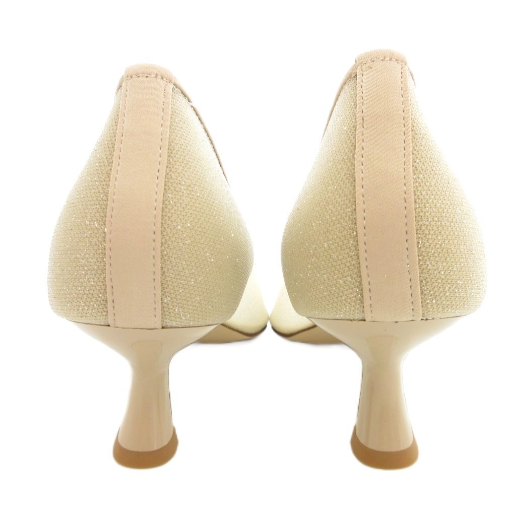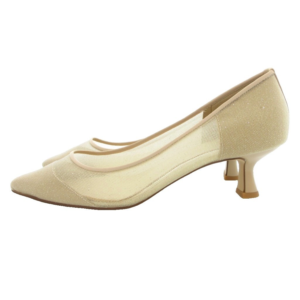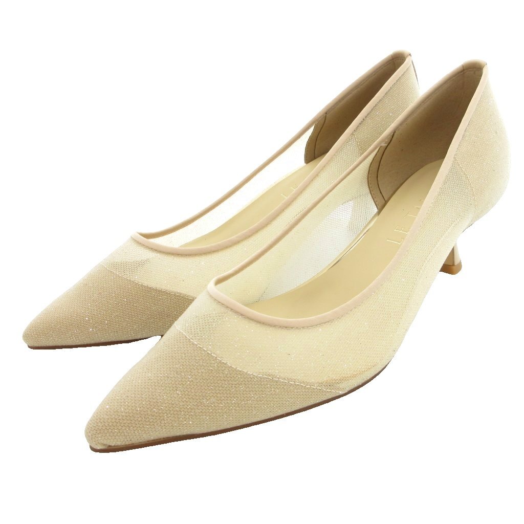 ルタロン Le Talon 25SS 美品 ポインテッドチュールドットパンプス 24.5cm ベージュ /UO レディース