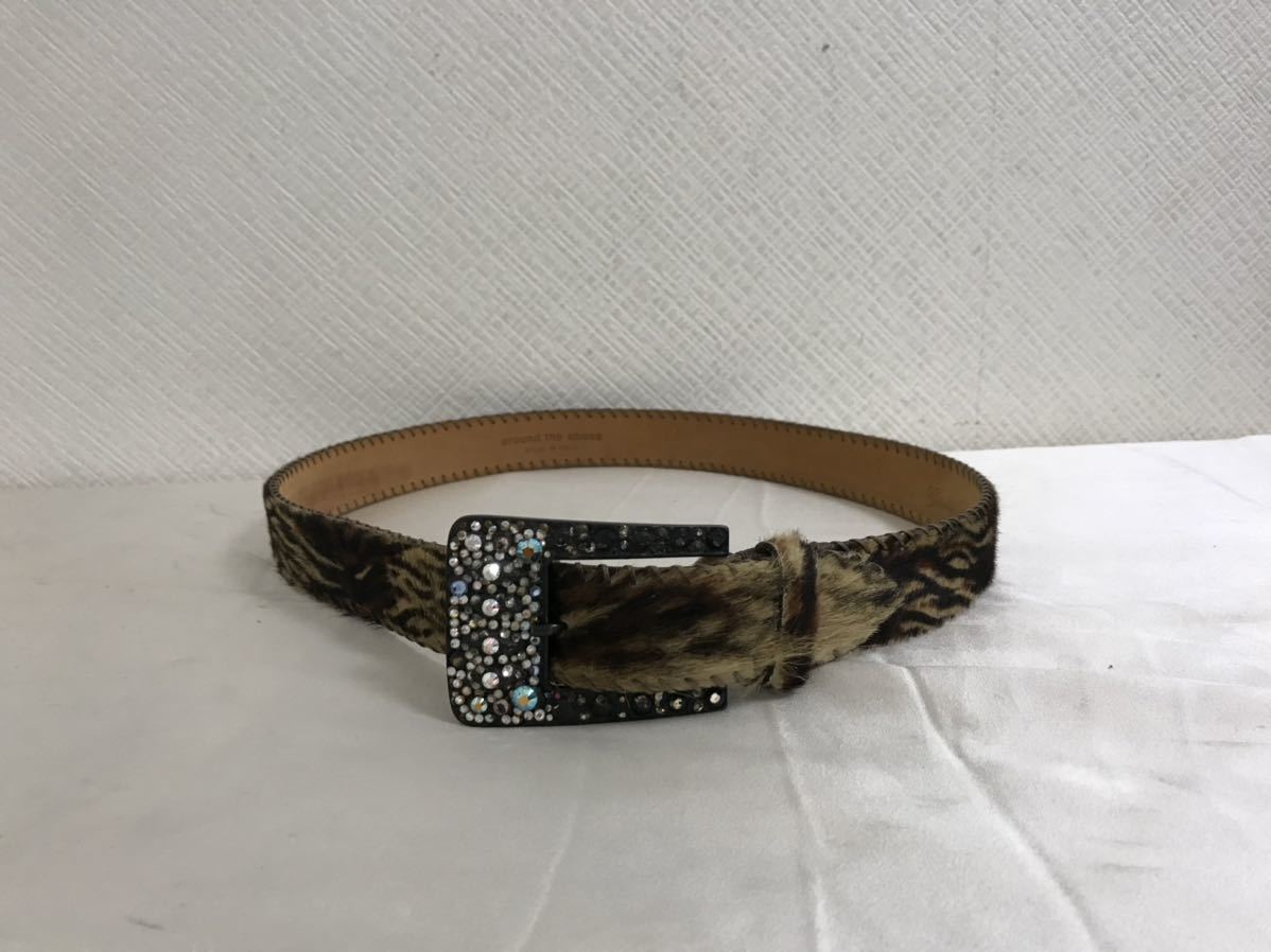 商品名:本物アラウンドザシューズaroundtheshoes本革レザーハラコファーラインストーンベルトビジネススーツ旅行トラベルメンズ茶柄イタリア製L/LL