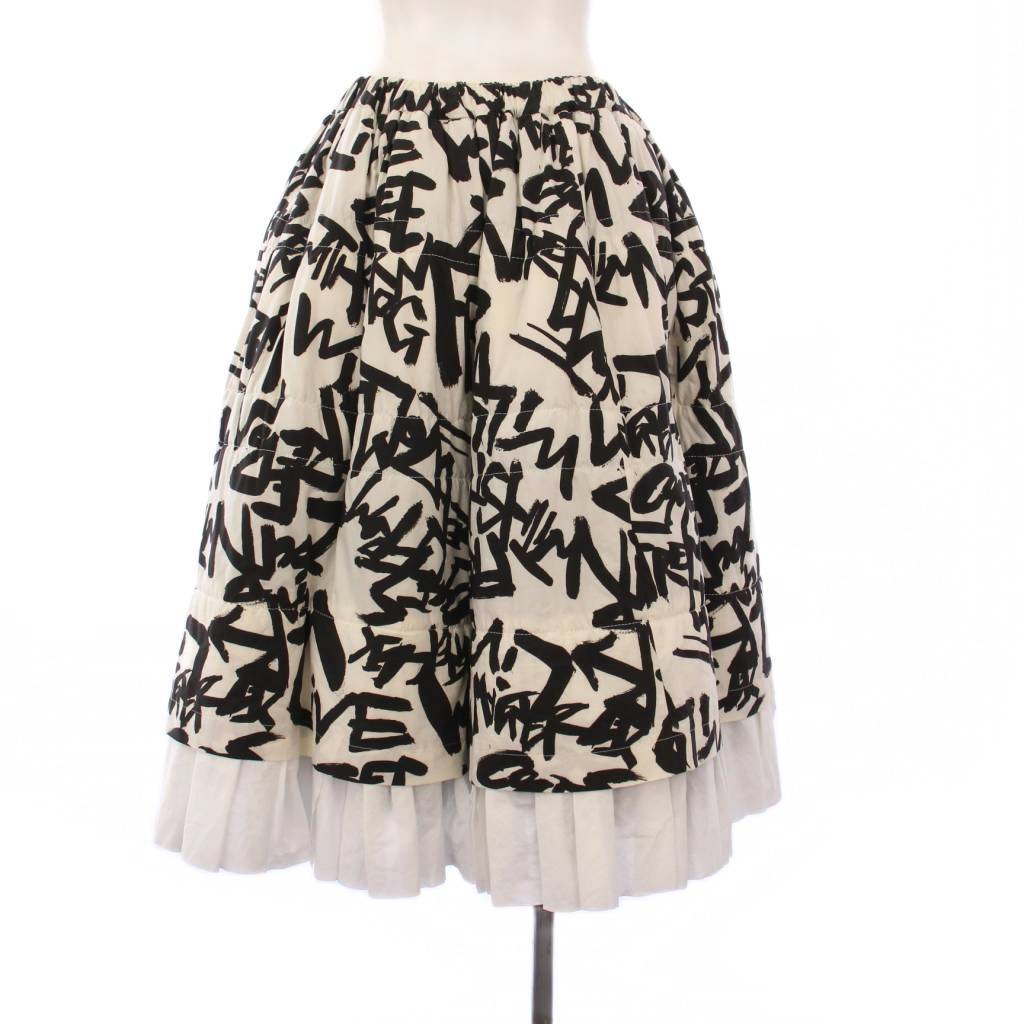 コムデギャルソン COMME des GARCONS 21AW チュールスカート フリル ひざ丈 ロゴ XS 白 黒 GH-S016 /KH レディース