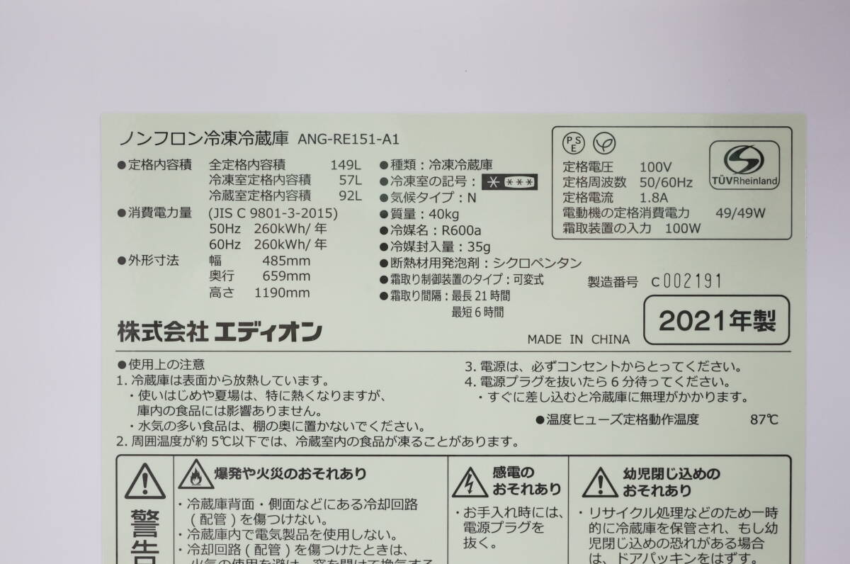 ■前ダ:【e angle】レトロ調 2ドア 冷凍冷蔵庫 149L ANG-RE151-A1 2021年 グリーン 大きな取っ手 静音設計 ★送料無料★■ ◆家電量販店オリジナルブランドe angleシリーズ。 ◆オリジナルレトロ調デザイン。 インテリア性と実用性を両立させました。 ◆大きな取っ手でとっても開けやすい! ネイルアートをしている方や手の力が弱い方でも開けやすい、 上からしっかり握りこめる取っ手です。 ◆インバーターによって温度をコントロール。 小型クラスには珍しいインバータータイプ・間接冷却で、野菜に直接風を当てず鮮度を長持ち。 家計にも優しい省エネ性能100%をクリア。 ◆小型クラスとしては広い57Lの冷凍スペースを確保。 冷凍食品や、作り置きの食材などたっぷりストックできます。 ◆静音設計 ワンルームでも音が気にならない静音設計。 ☆取扱説明書は→ 取扱説明書ダウンロードへ ※動作確認済みです。 中古のお品となります。 付属品は写真にあるものが全てです。 使用に伴うヨゴレ・キズが複数、冷蔵室ドアパッキンに歪みがございます。 商品画像をよくご確認の上、ご参加ください。 [管理No.前25090235R1] |