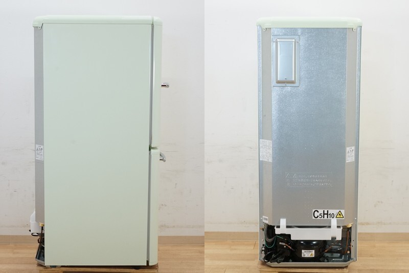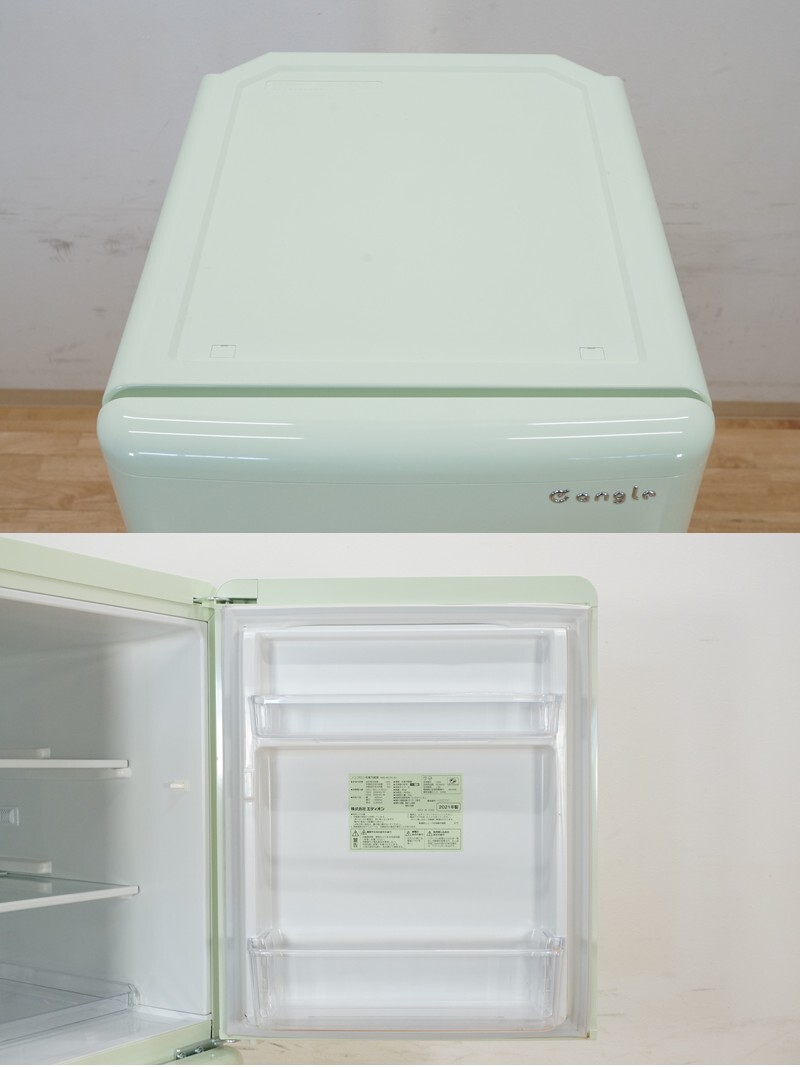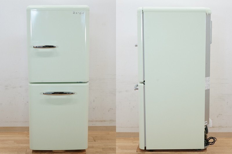 前ダ:【e angle】レトロ調 2ドア 冷凍冷蔵庫 149L ANG-RE151-A1 2021年 グリーン 大きな取っ手 静音設計 ★送料無料★ |