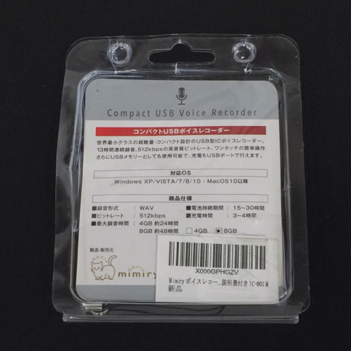 mimry コンパクトUSBボイスレコーダー 8GB 現状品 説明書 外箱等 付属 |
