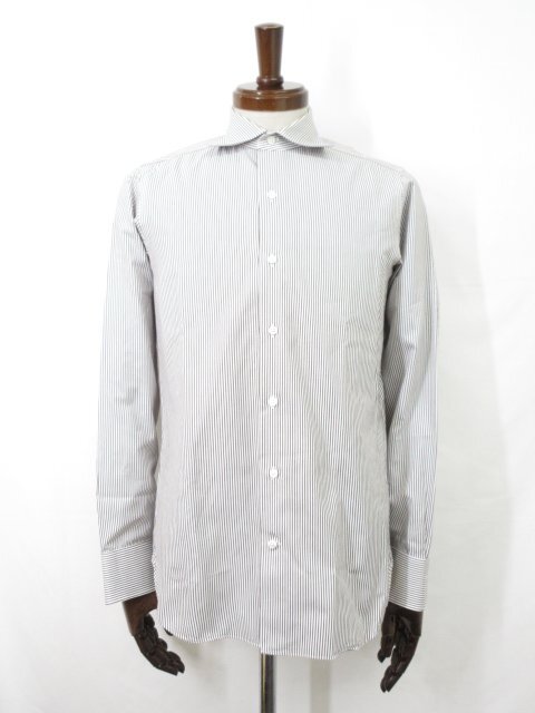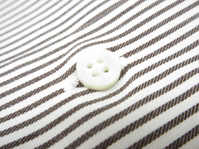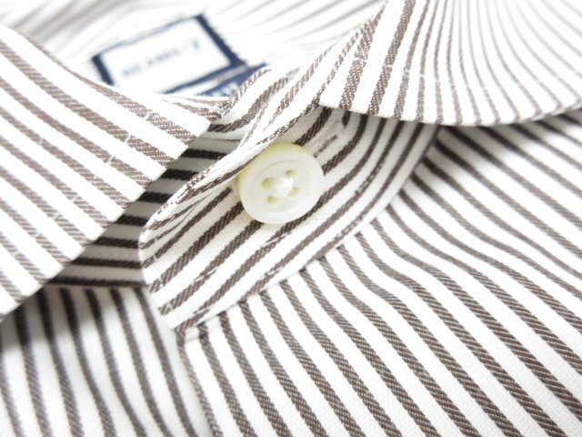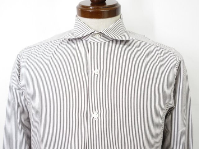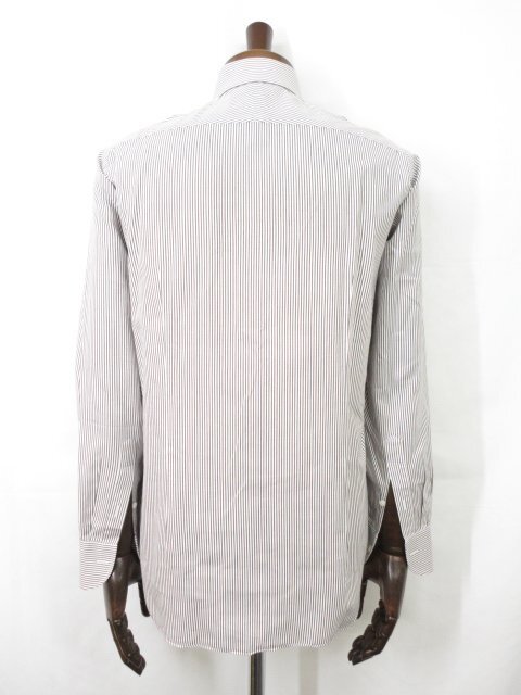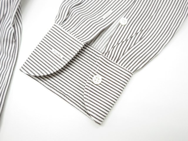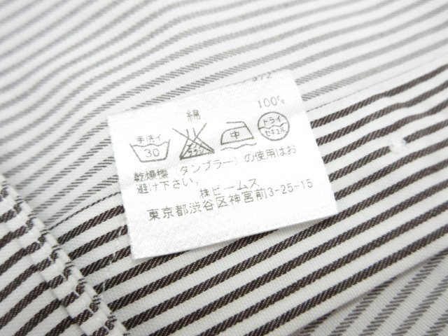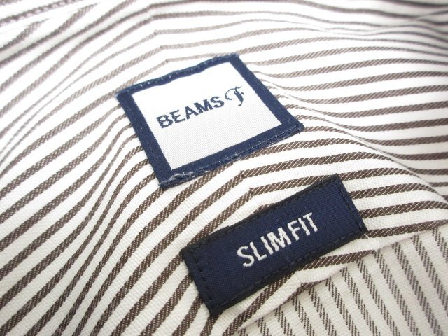美品【ビームスF BEAMS F】21-11-2178-183 コットン100% ストライプ柄 長袖シャツ (メンズ) size38 ホワイト×ブラウン系 ◇35MK6104◇