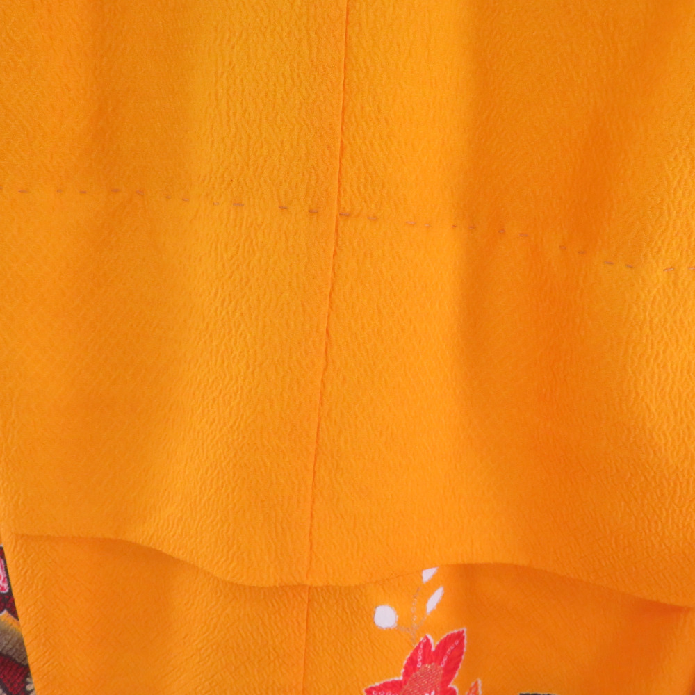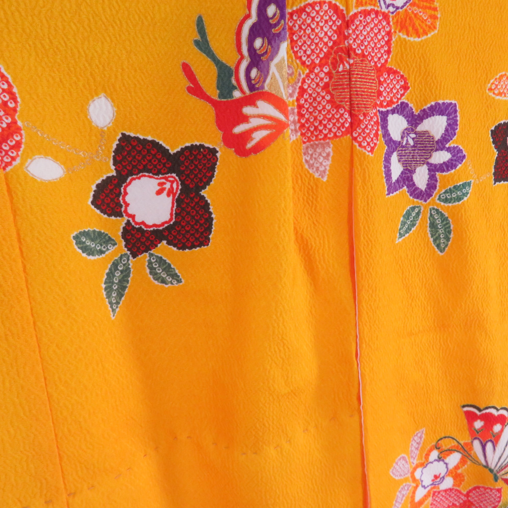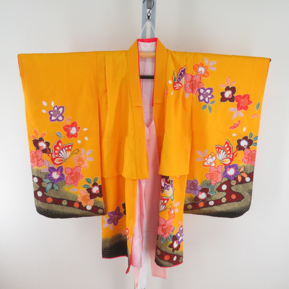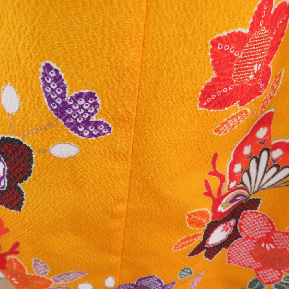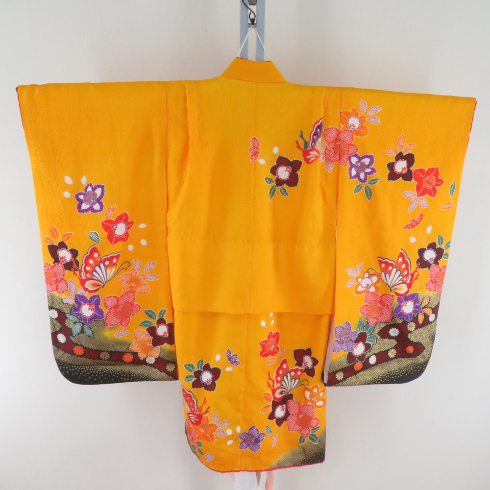 | 子供着物 女の子用 四つ身 襦袢セット 箔 花蝶文様 黄色 アセテート 洗える 袷 フォーマル 子供きもの 女児 七五三 祝着 身丈95cm |