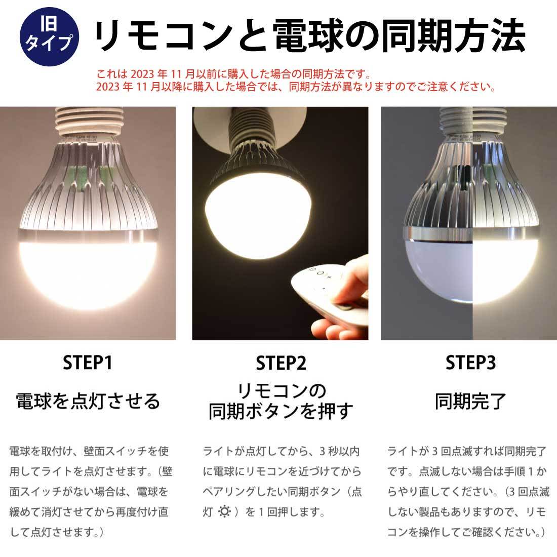 ※2023年11月より電球とリモコンが新しくなりました。同期方法が異なり、11月以前の電球とリモコンには互換性がありません。追加購入する際はご注意ください。