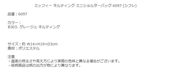 ~ミッフィー キルティング ミニショルダーバッグ 6097~ |