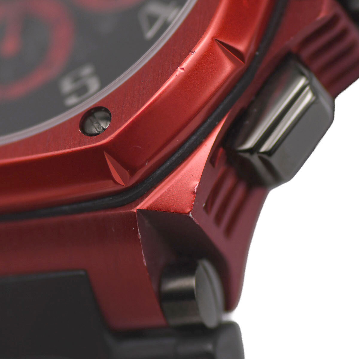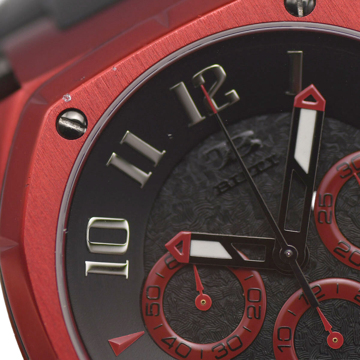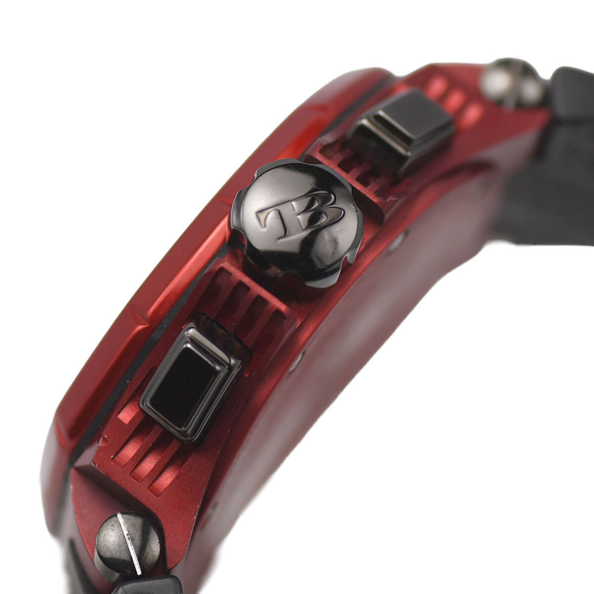 時計本体に軽微なスレ・打痕、ラバーベルトに若干の汚れが見受けられます。 その他大きなダメージはなく、まだまだ永くご愛用いただけるコンディションです。 オーナー兼デザイナーのトマソ・ブティが2001年に創業したイタリアンメーカー、BUTI(ブティ)の『マグナムスピード クロノグラフ』が入荷しました。 レッドカラーのエレガルと呼ばれる独自素材のアルミニウムケースにブラックのラバーベルトのコントラストが映えるデザイン。 こちらは世界限定1,000本の希少モデルとなっておりますので、この機会に是非ご検討ください。 |