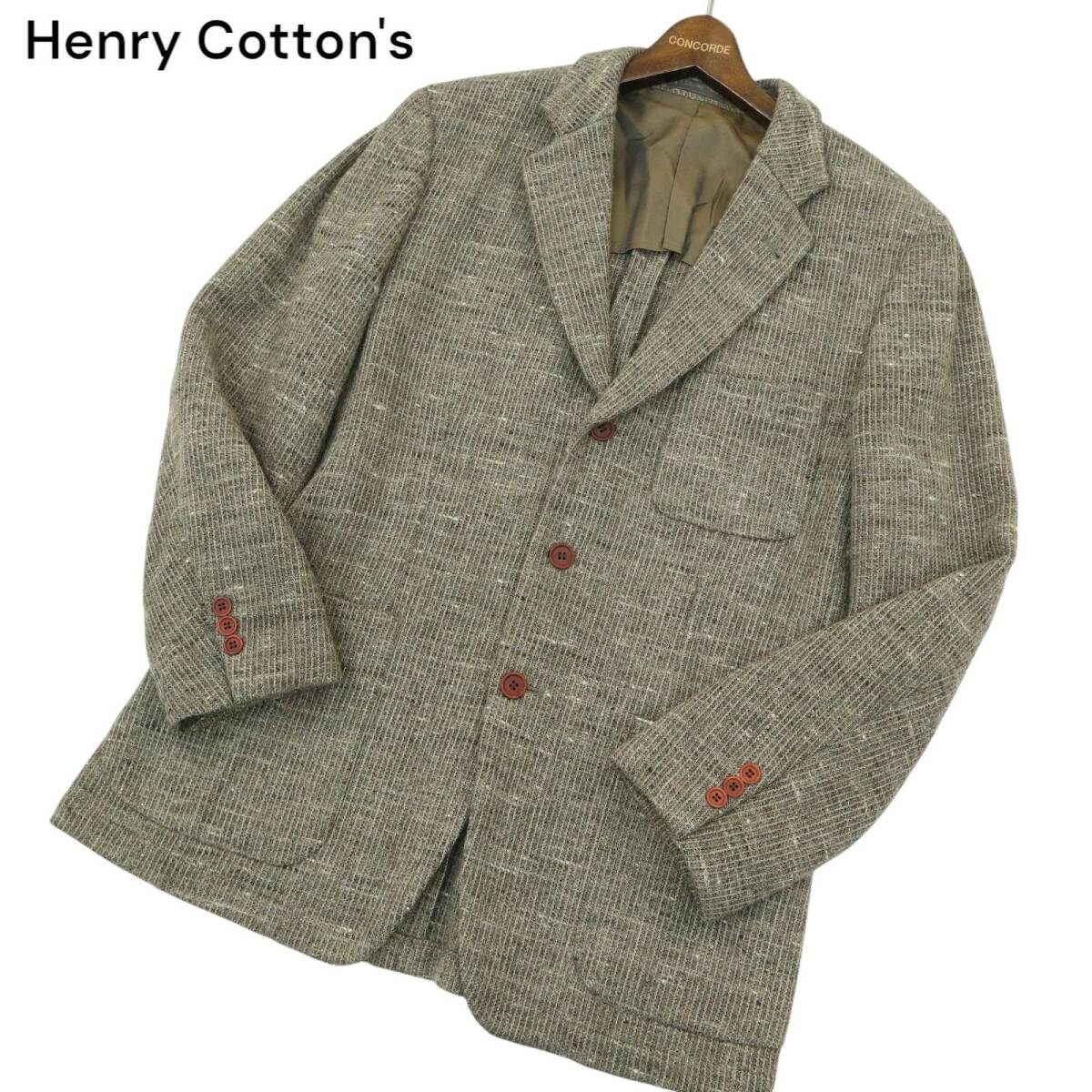 Henry Cotton's ヘンリーコットンズ 秋冬★ ウール ネップ ニット テーラード ジャケット ブレザー Sz.48 メンズ 灰 日本製